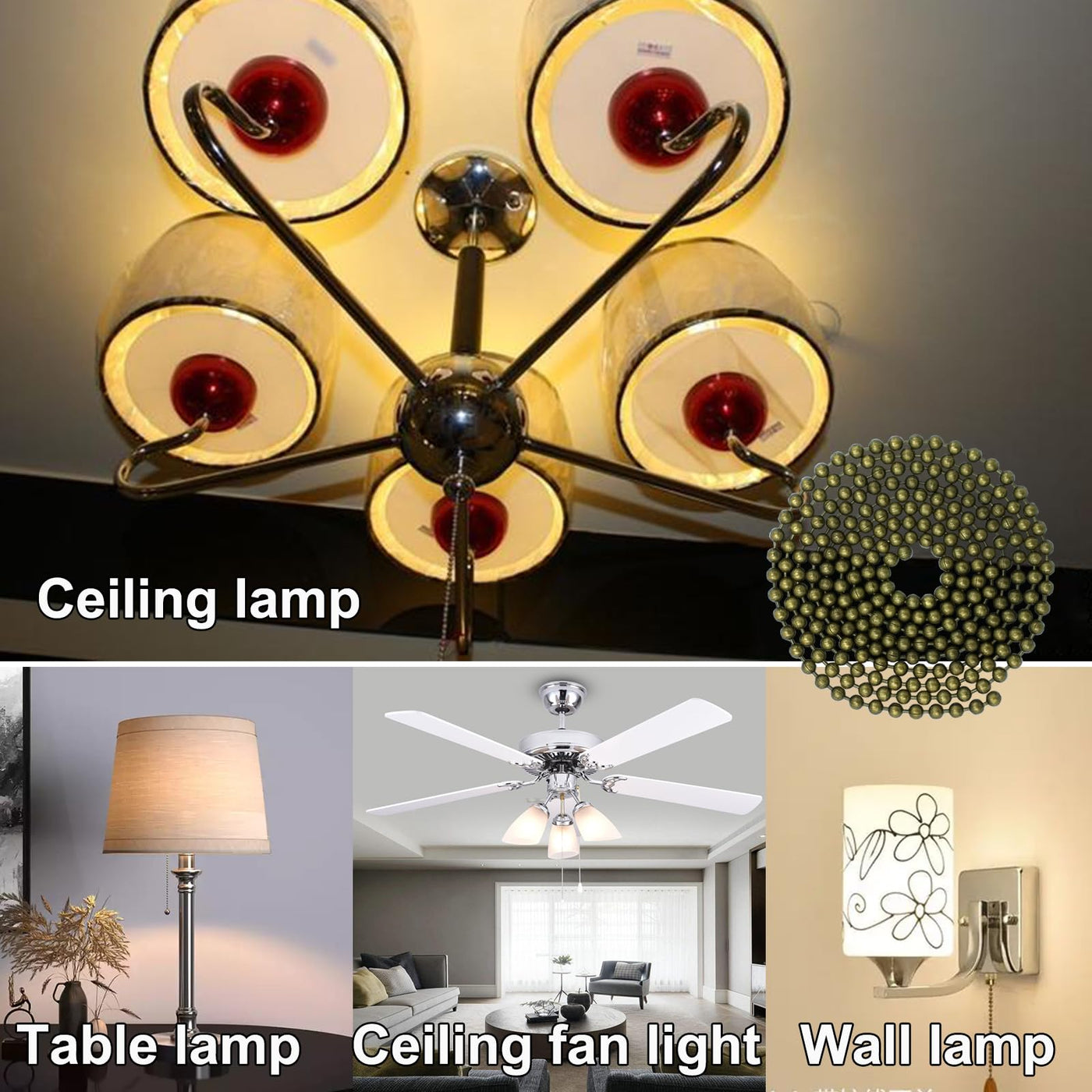 Feature: Round Beaded With Smooth Surface, With No Burrs, Comfortable In Touch. Good Quality And Durable. Application: Good For Replacement For Handle Or Extension Pull Chain. Well Suit For Ceiling Light, Ceiling Fan, Guyed Desk Lamp, Etc. You Can Also Use It Just As Decoration Due To It Looks Shiny And Solid, Beautiful And Stylish Enough. Package Includes: 4 X 39 Inch Pull Chain Extension (1 Meter) 8 Additional Matching Connectors