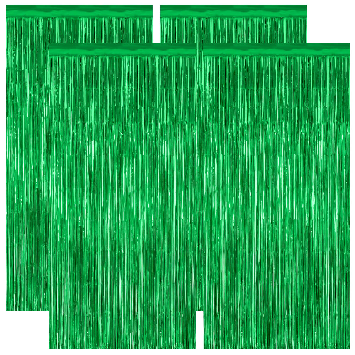 4 Pack Green Streamers, 3.28 Ft X 7.05 Ft Birthday Tinsel Backdrop, Metallic Green Foil Fringe Curtains Photo Booth Backdrop, Gr