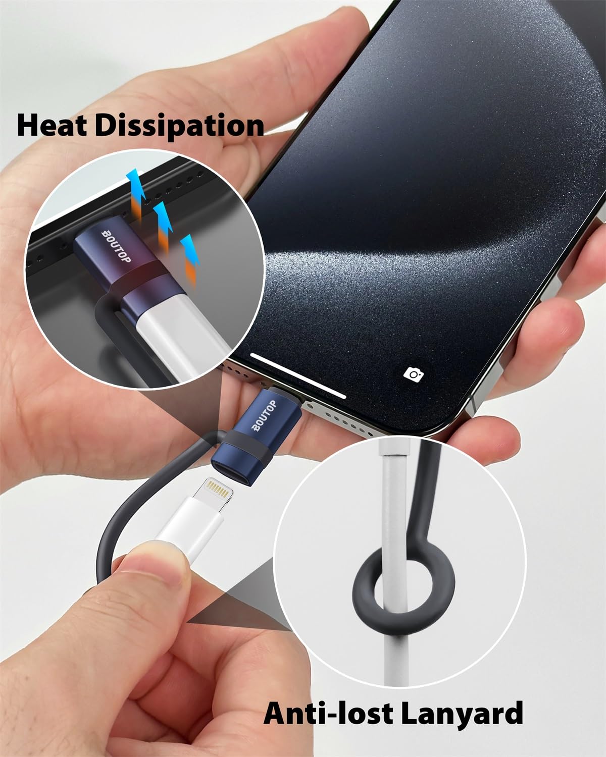 Lightning To Usb C Adapter, Support 65W Pd Fast Charging Compatible With Iphone 15 Series, With Anti-Lost Holder