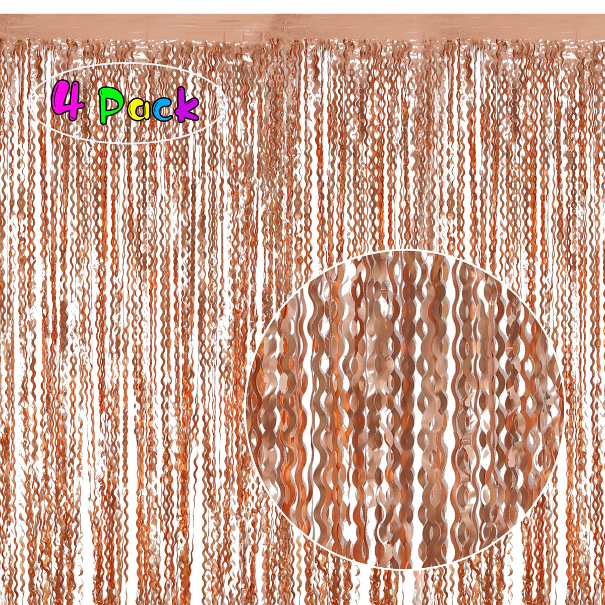 4 Pack Rose Gold Backdrop Birthday Decorations 3.3X6.6Ft Wavy Tinsel Foil Backdrop Party Streamer Party Supplies Background |