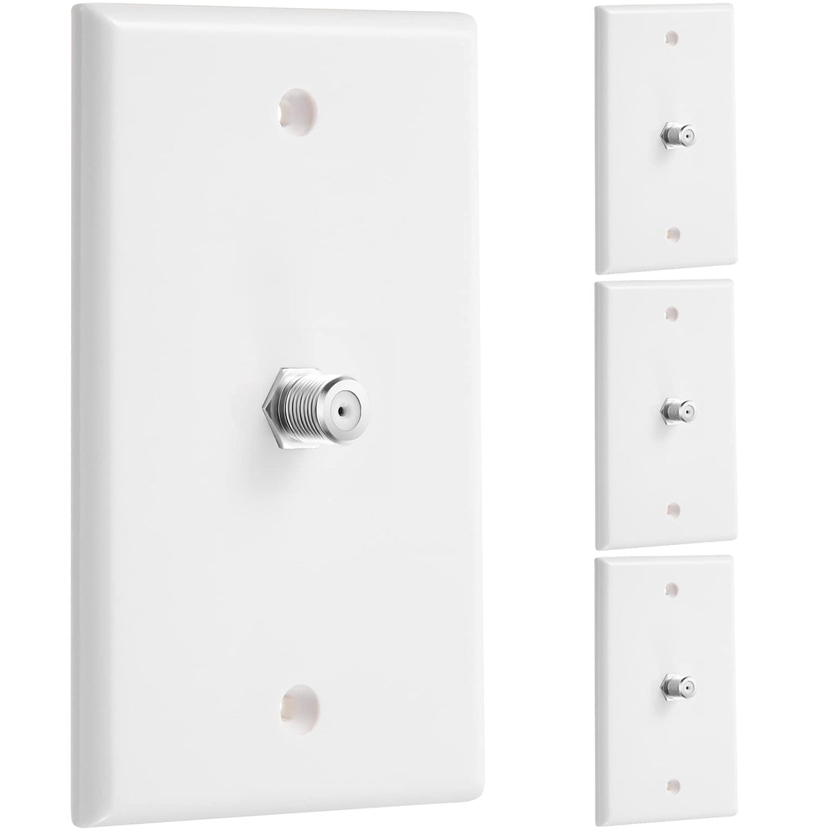 4 Pieces Coax Wall Plate 1 Port Tv Cable Wall Plate F Connector Wall Plate Single Gang Video Wall Jack Wall Plates (White)