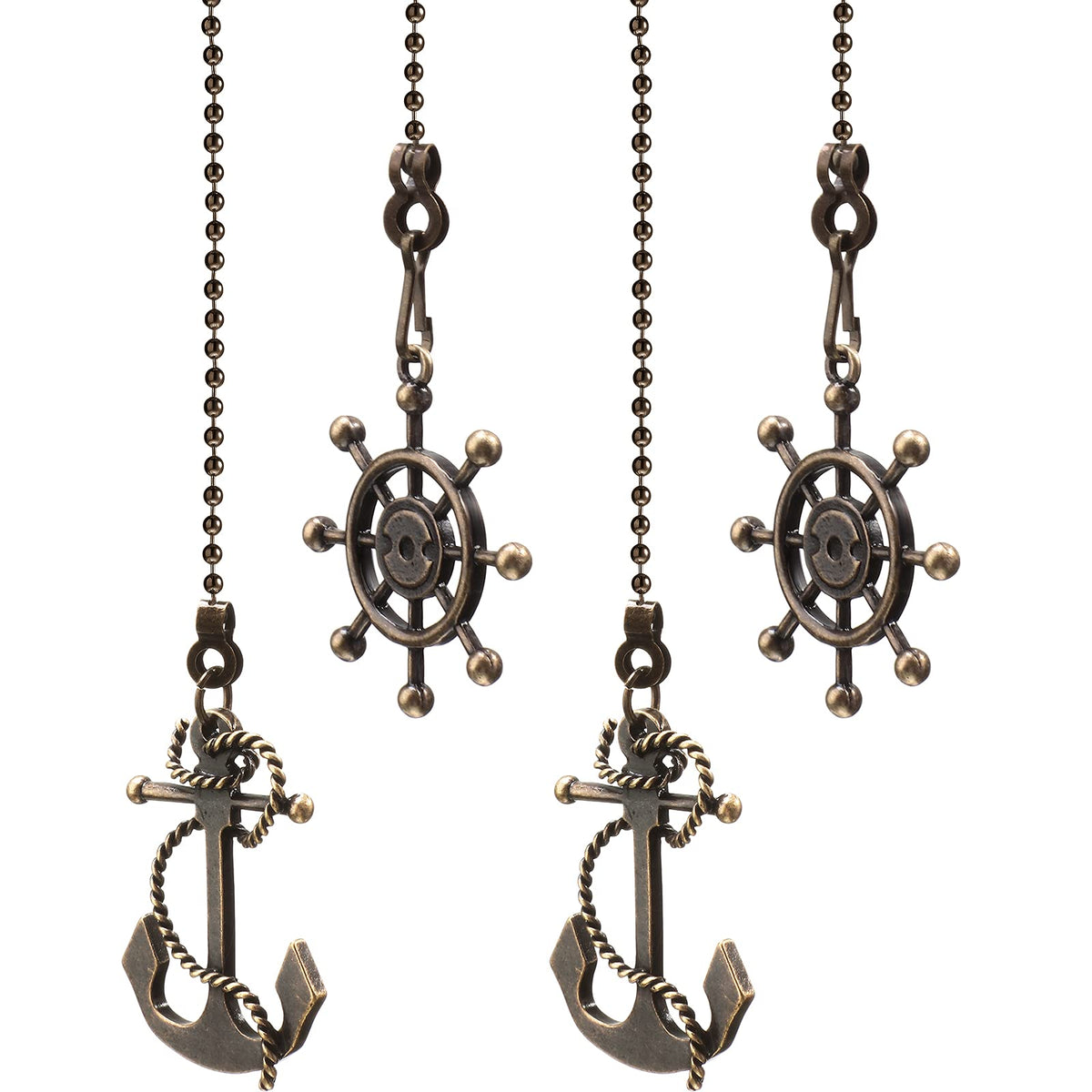 4 Pieces Vintage Anchor And Wheel Ceiling Fan Pull Chain With 14 Inches Fan Pulls Chain Extender For Bathroom Toilet Light Ceili