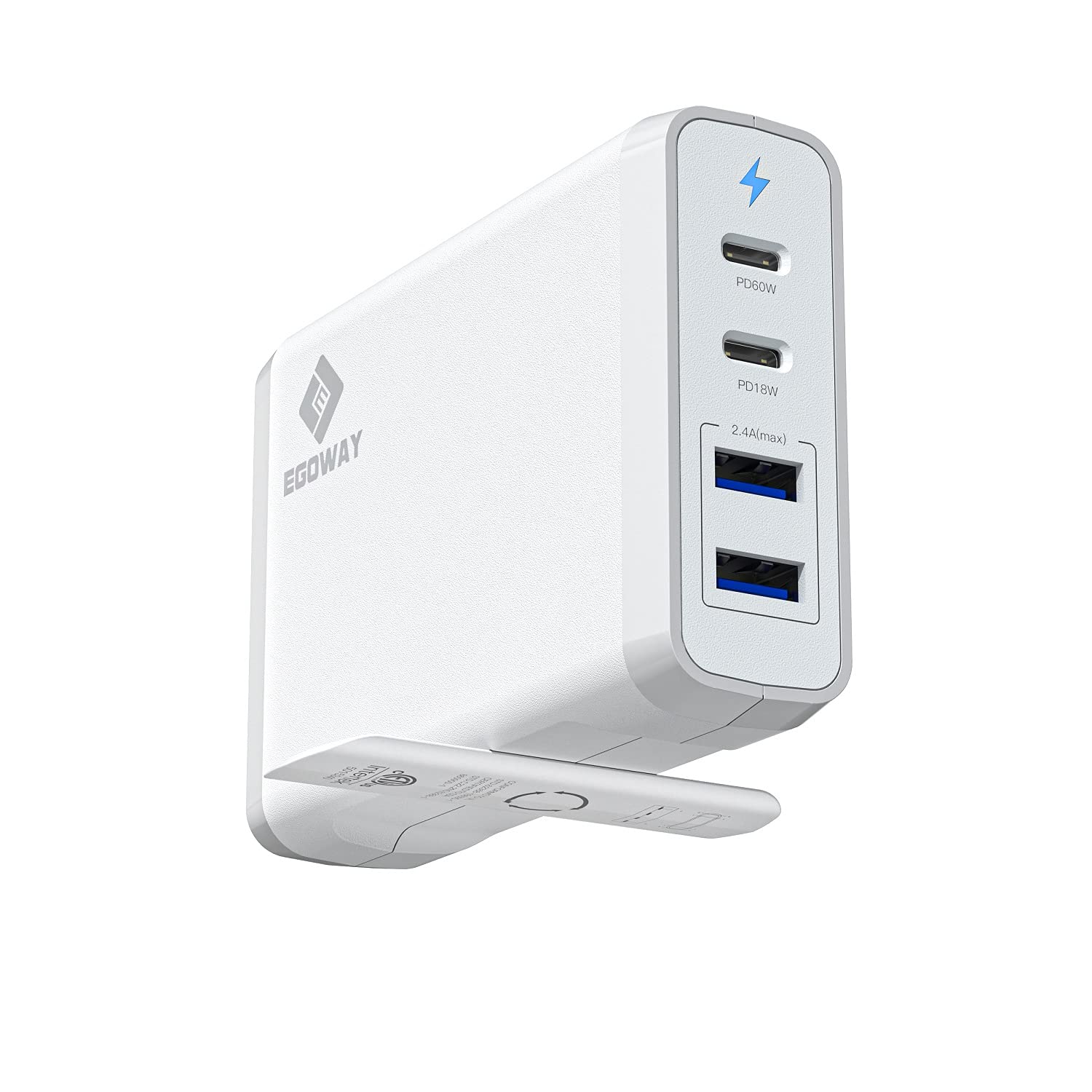 4 Port Usb Charger, Egoway 90W Wall Charger, 60W & 18W Dual Usb C Wall Charger And Dual Usb A Ports 12W, Multi Usb C Charger For Macbook, Phone And More. (White)