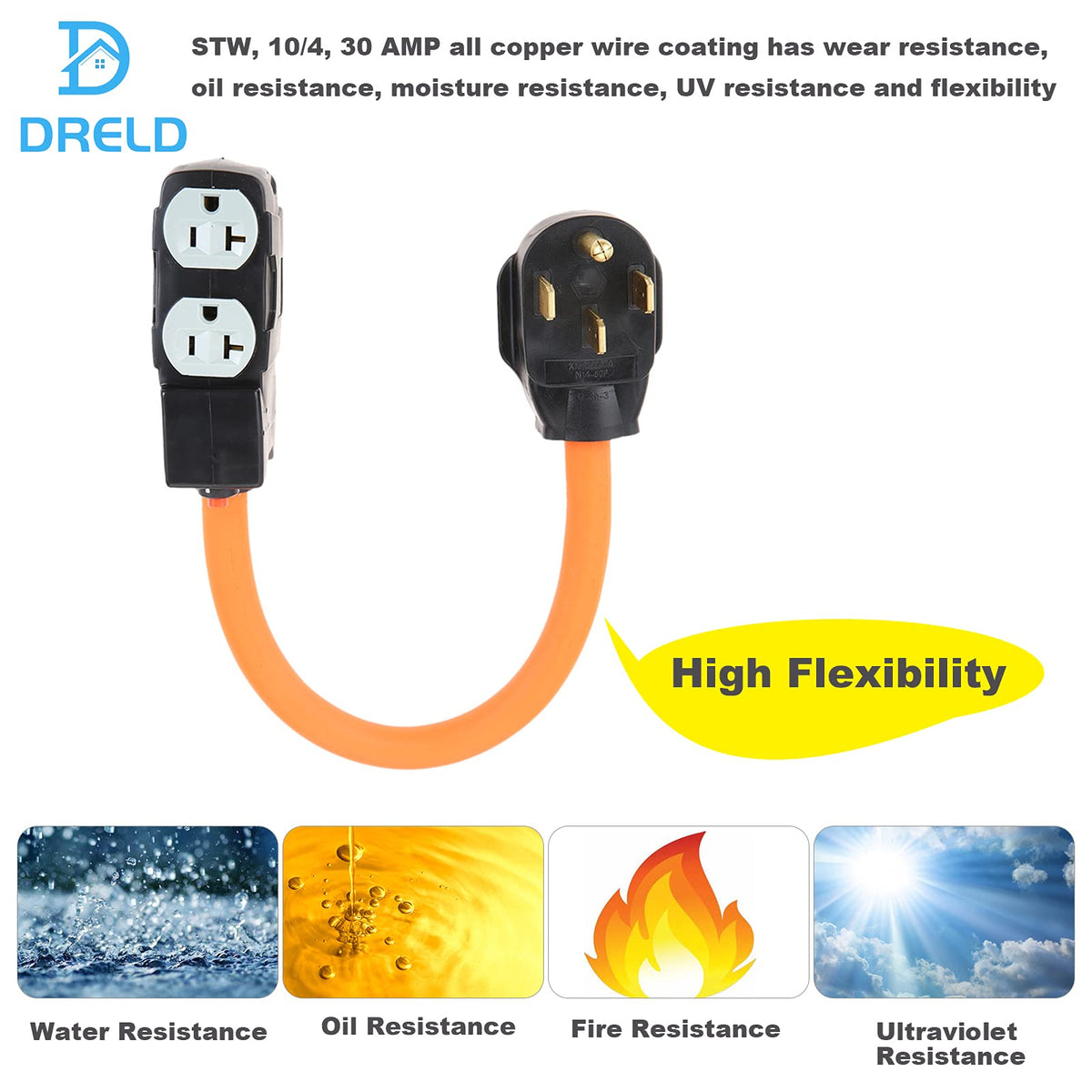 Q: Is this adapter suitable for outdoor use?A: Yes, the adapter is designed with a cold weather resistant jacket, making it suitable for outdoor applications like RV campsites and construction sites, while maintaining flexibility in extreme temperatures.