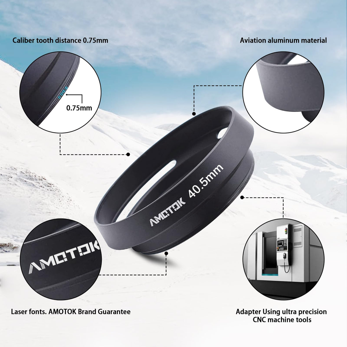 (The Camera Is Not Included And Lens) Product Description Brand: Amotok Material:Space Aluminum Model Number:40.5Mm Metal Lens Hood It Is 100% Brand New And Quality Is Guarantee.Top Of The Line Quality,Adapter Using Ultra Precision Cnc Machine Tools,Sophisticated Material,High Intensity, Good Operation Stability. Function: The Hood Is Made Of Quality Metal Material, Sturdy, Anti-Rust And Durablethe Inner Surface Is Coated With Matte Paint, Can Decrease Reflection To Improve Image Qualitycan Keep Rain And Snow Away From The Lens And Avoid Fingerprints From Smudging The Lens For Better Care For Your Camera Useful Accessory For Photographer Lovers Package Includes: 40.5Mm Metal Lens Hood *1 (Original Manufactory Package)