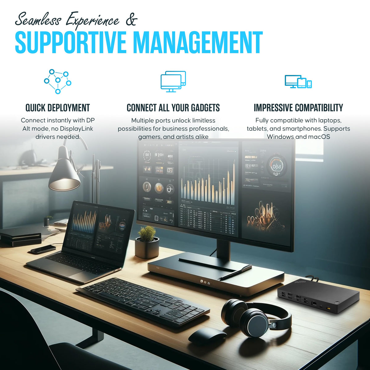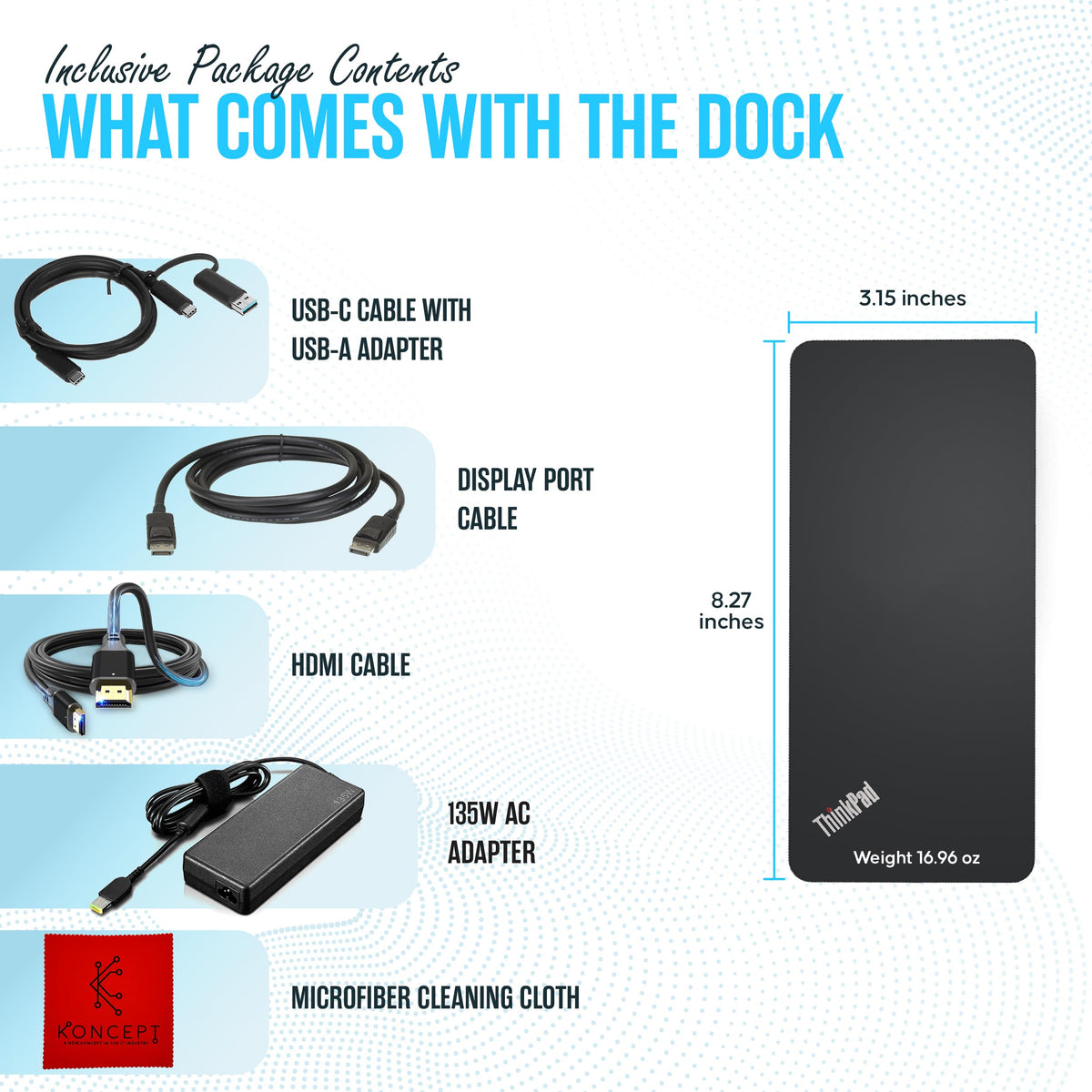 Koncept Lenovo 40Af0135Us Docking Station Bundle - With 135W Ac Adapter Hdmi Cable Displayport Cable Usb-C To C Cable With Usb-A Adapter