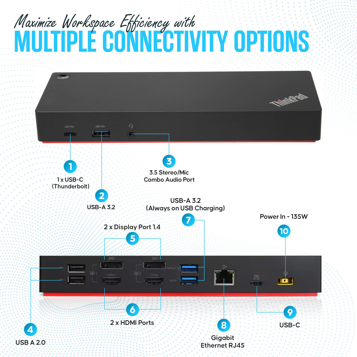 40Af0135Us Lenovo Docking Station Hybrid Usb C With Usb A 1 Year Warranty Lenovo Thinkpad Dock Usb C With 135W Ac Adapter, H