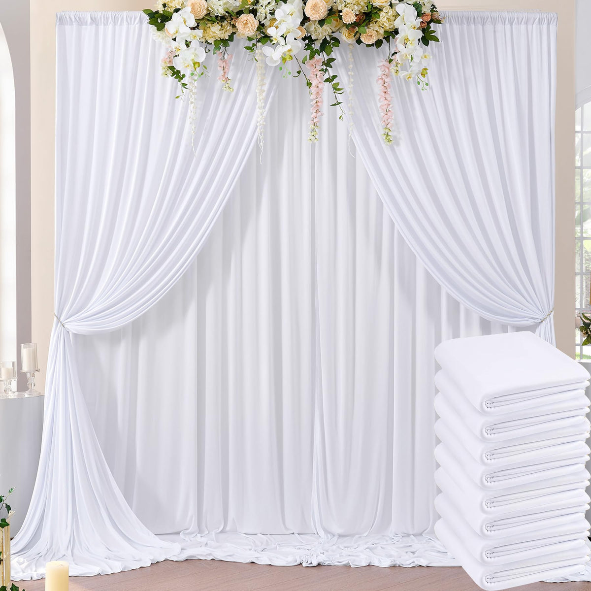40Ft 10Ft Wrinkle Free White Backdrop Curtain For Parties, 8 Panels 5 10Ft Polyester Photo Backdrop Drapes Cloth For Weddings