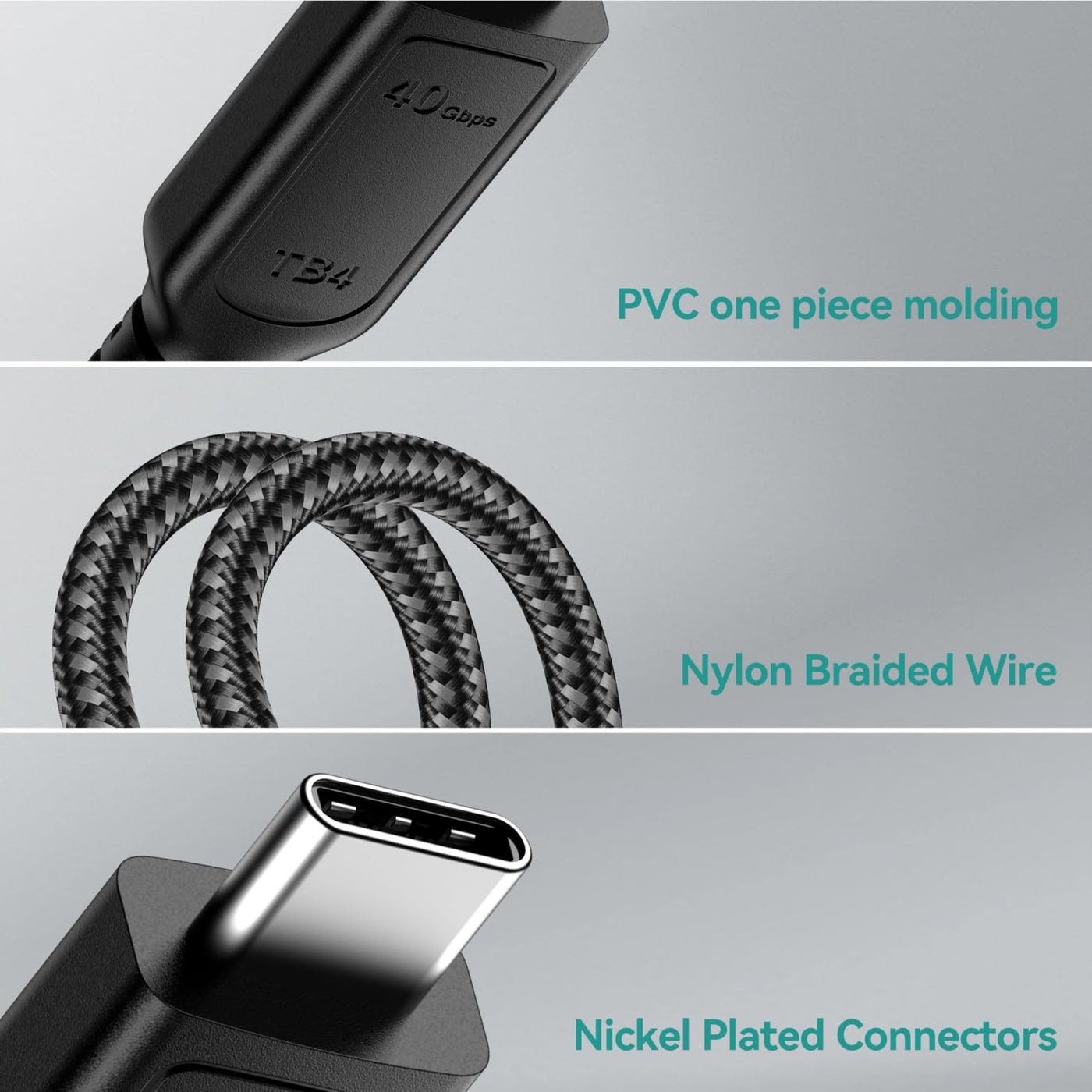 Q: What materials are used to ensure the durability of this Thunderbolt cable?A: The ConnBull Thunderbolt 4 cable features a braided nylon exterior designed for enhanced durability, along with reinforced connectors and thicker gauge wire, ensuring stable signal transmission and a longer cable life.