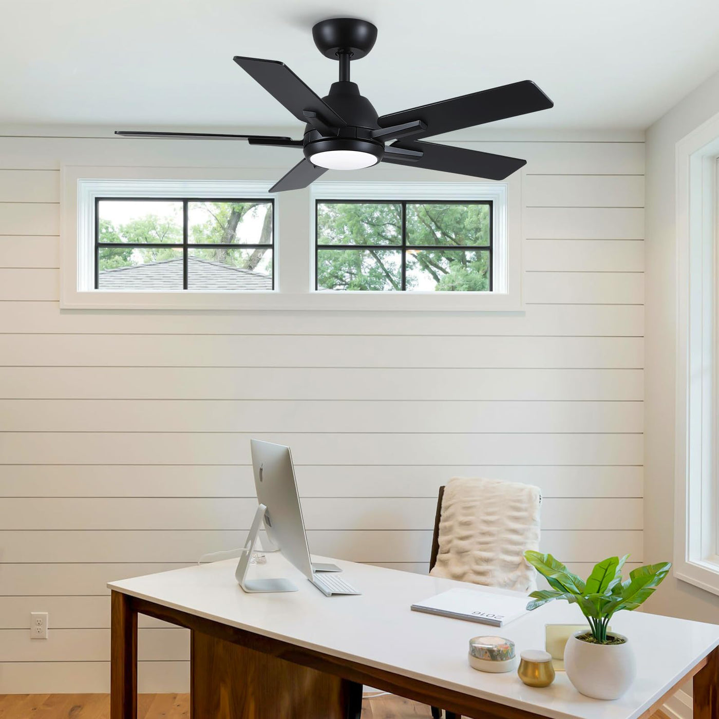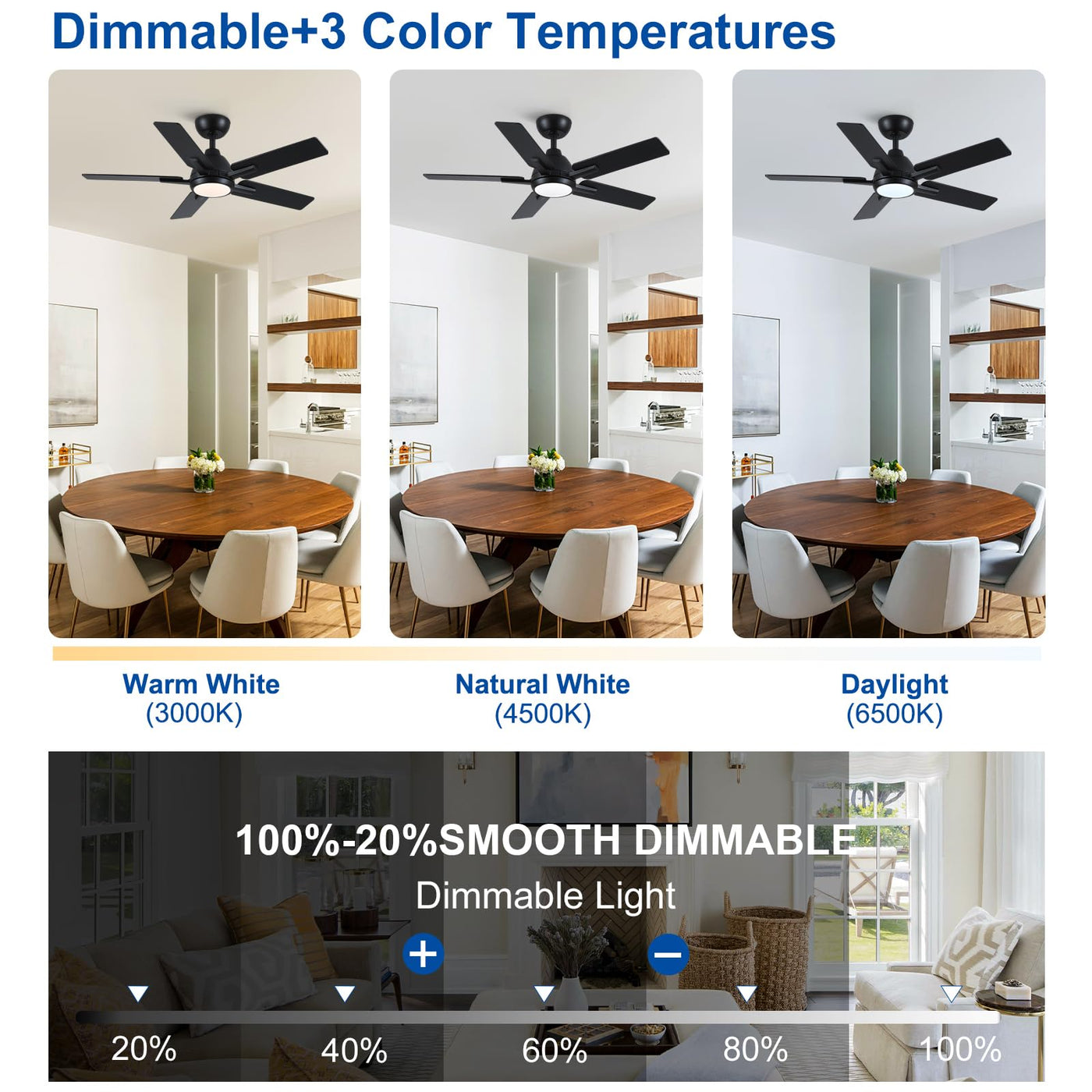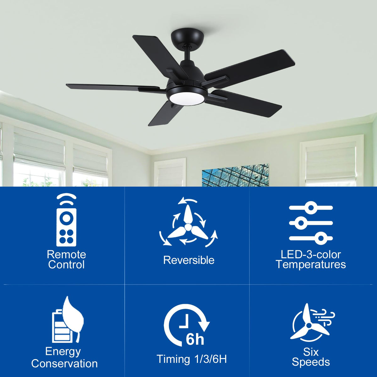 42 Inch Ceiling Fan With Light,Black Ceiling Fan,5 Blades,Downrod,6 Speed Adjustable Remote Control,24W Dimmable Led,1/3/6 Hours Timer,Reversible Dc Motor, For Patio Living Room Bedroom Dining Room Warehouse