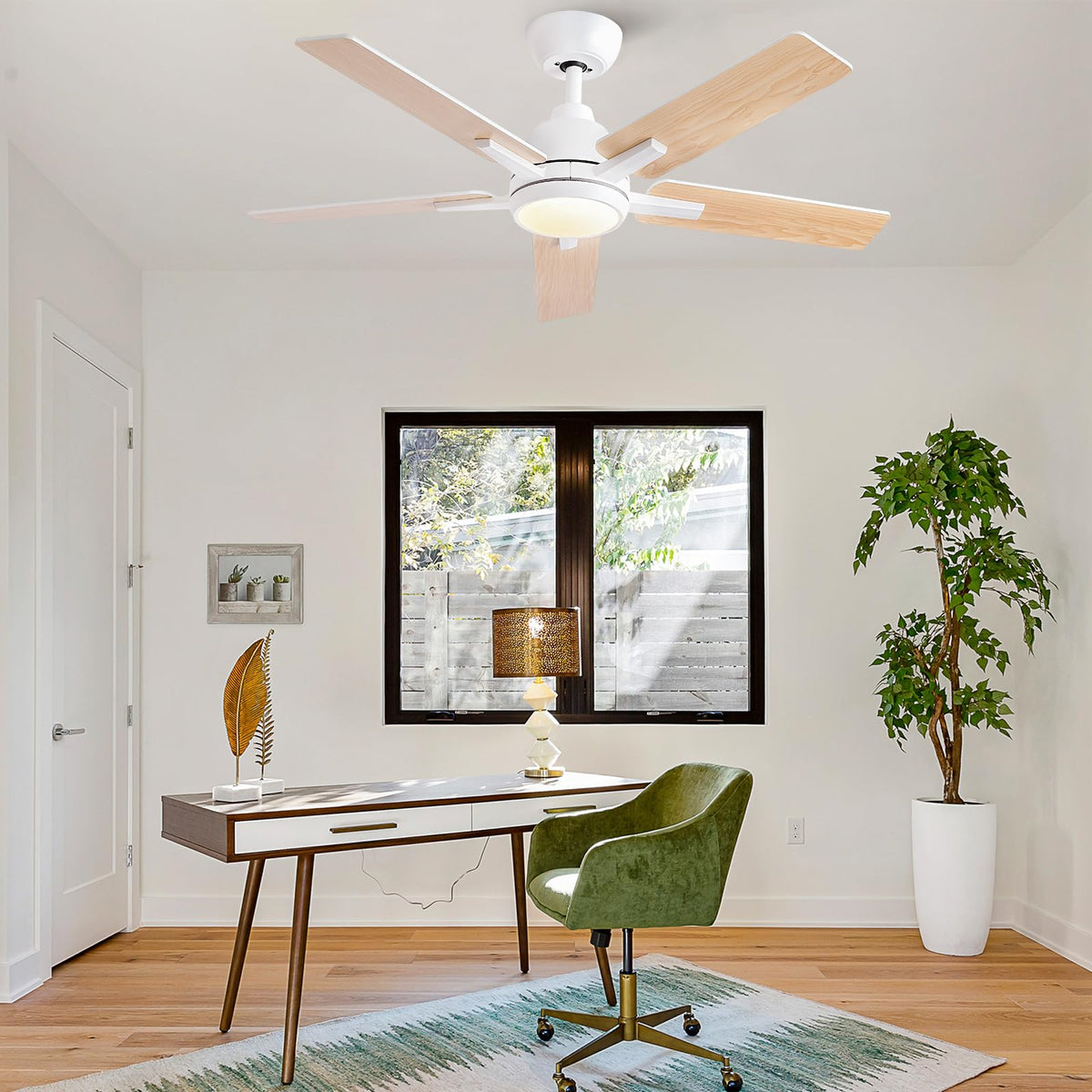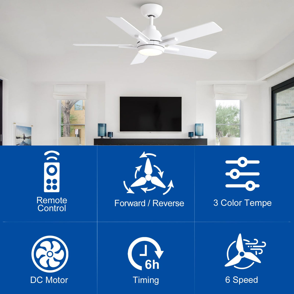 42 Inch Ceiling Fans With Lights And Remote,White Ceiling Fan With 5 Dual Sided Blades,Downrod,Quiet 6 Speed Reversible Dc Motor