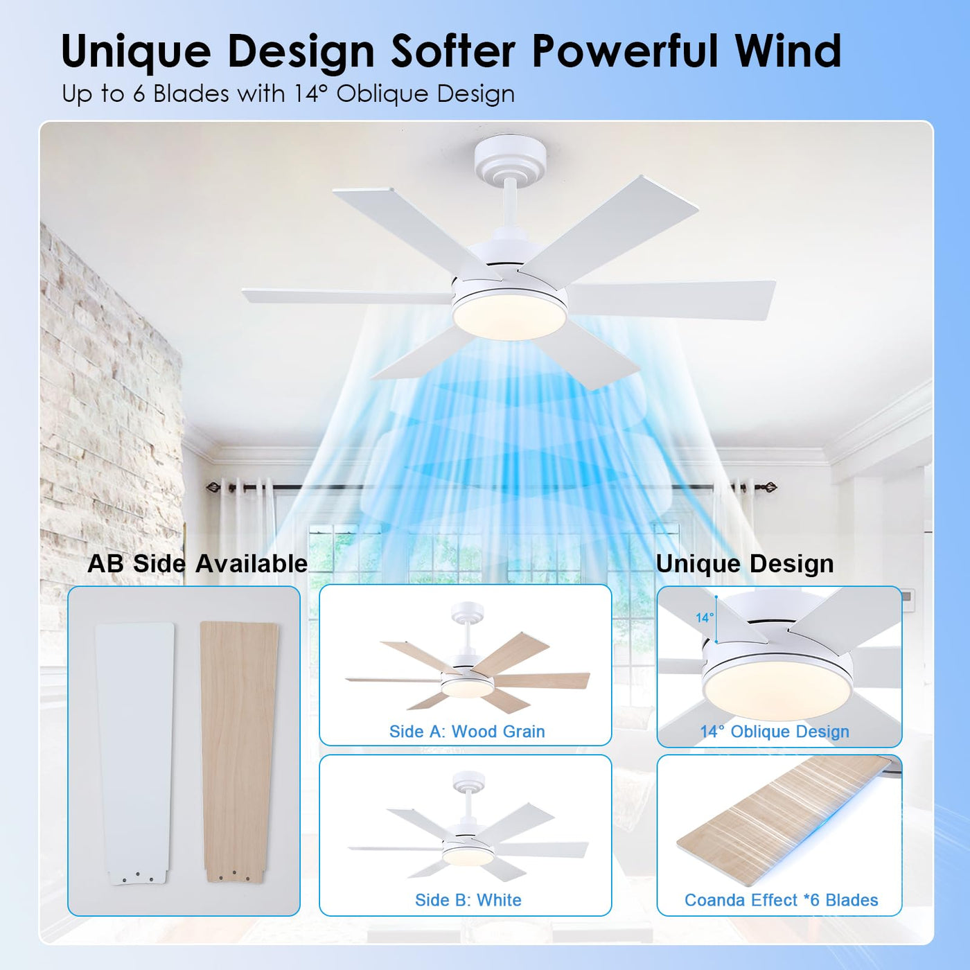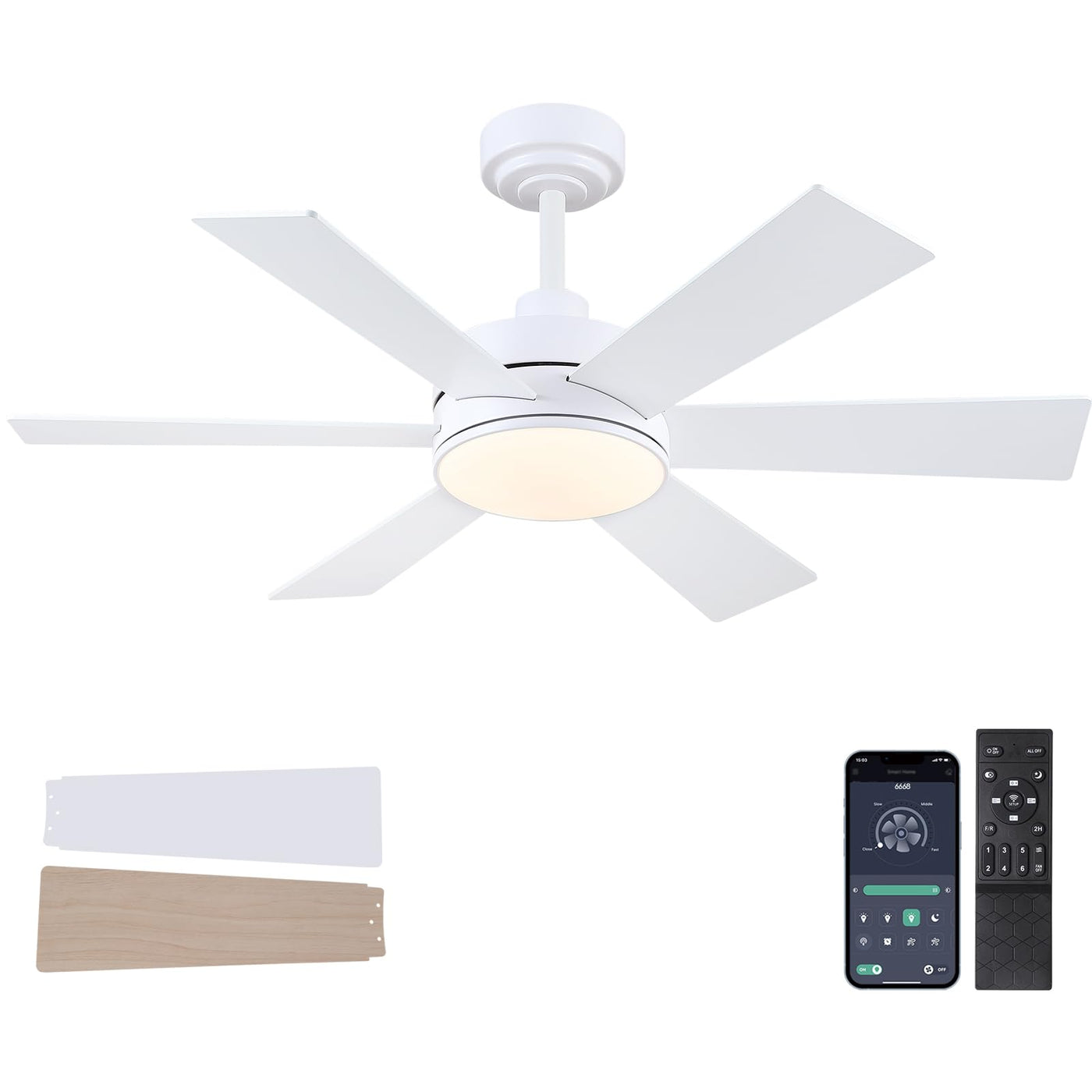 42 Inch Ceiling Fans With Lights, Ceiling Fan With Remote App, Dual Sided Modern/Rustic 6 Blades, Reversible, 3Cct, Sloped Flush