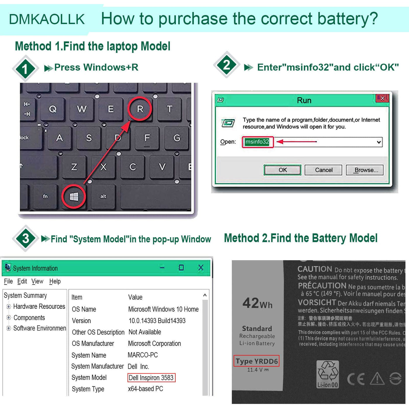 42Wh Yrdd6 Battery For Dell Inspiron 15 3000 Series 3583 3593 3582 3584 3501,Inspiron 15 5000 Series 5582 5584 5593 5594 5598 55
