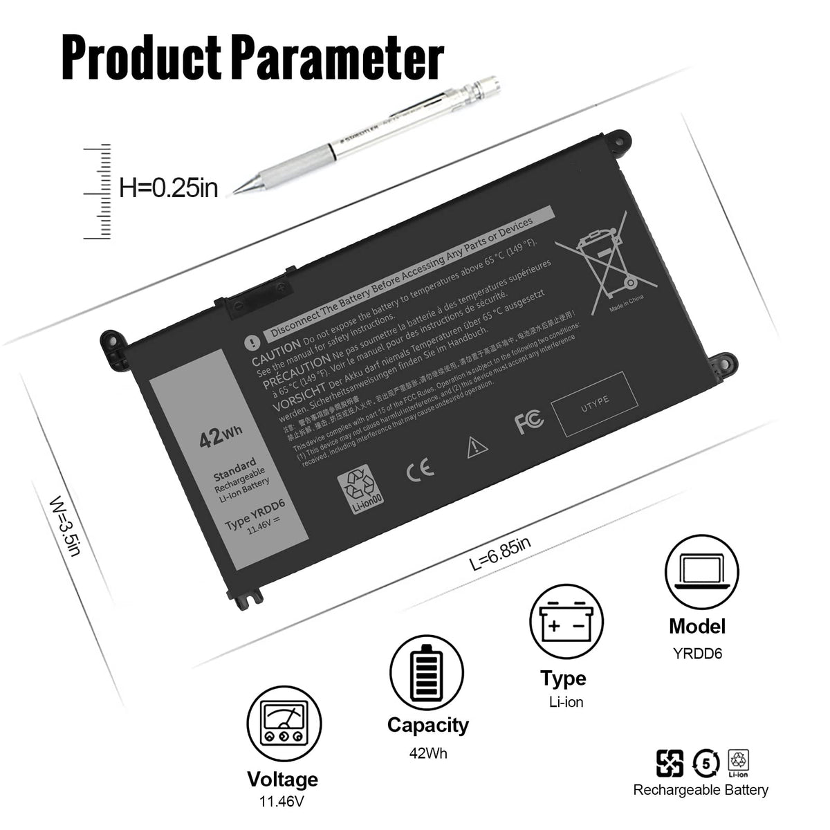 Q: What is the capacity and voltage of the YRDD6 battery?A: The YRDD6 replacement battery has a capacity of 42Wh and operates at a voltage of 11.4V. It is a 3-cell lithium-ion battery designed for reliable performance.
