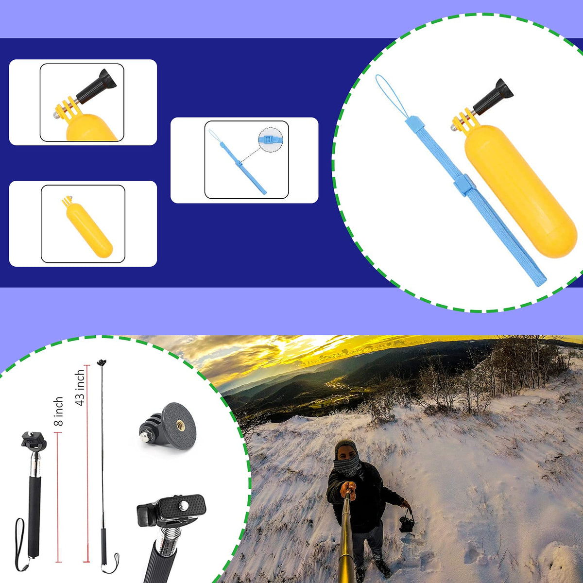 This 44 In One Accessory Kit Is Compatible With Insta360 One X2, One R, X, Gopro Max, Hero Series Accessories. It Can Protect And Use The Camera Very Well And Is An Excellent Accessory. With Our Products, You Can Get A Better Outdoor Sports Experience. Vlog, Skiing, Biking, Canoeing, Diving, Parachuting, Swimming, Surfing, Biking, Biking, Rock Climbing, Skiing, Free To Shoot Beautiful Scenery And Record Beautiful Moments! Packing List: 1 X Storage Bag 1 X Chest Strap Holder 1 X Long Connection 1 X Short Connection 1 X Spinning Backpack 1 X Selfie Stick 2 X Adapter 1 X Rubber Band 1 X Chest Band 1 X Remote Control Belt 1 X Bicycle Clip 1 X Chuck Suction Cup 2 X Quick Plug Base 2 X Quick Plug J Base 2 X Flat Base 5 X Round Primer 2 X Curved Base 5 X Square Primer 2 X Safety Buckle + Primer 1 X Three Opening Wrist Band 1 X Buoyancy Bar 1 X Short Screw 1 X Wrist Strap 5 X Long Screw 2 X 4 / 1 Adapter