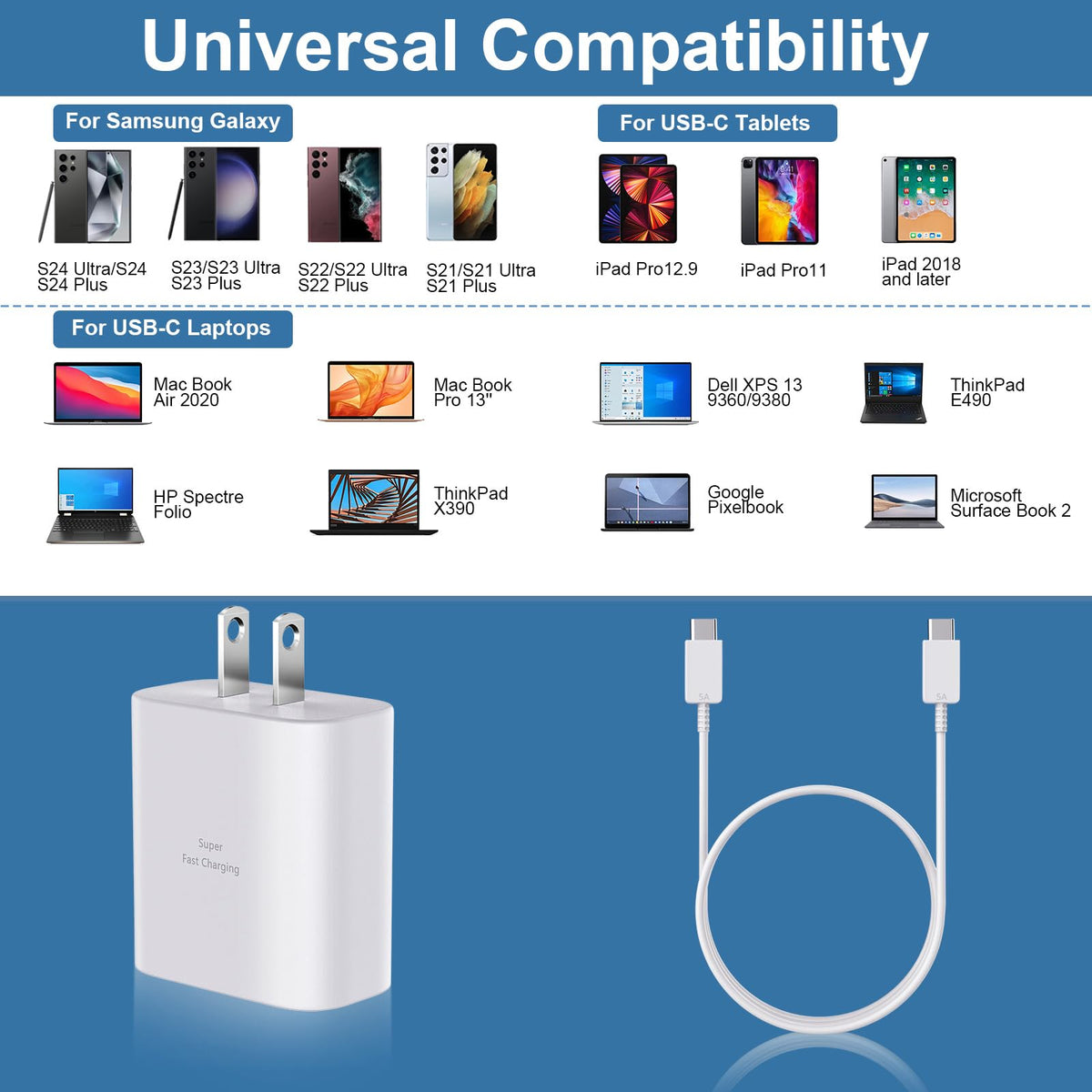 45W Samsung Charger, 45 Watt Super Fast Usb C Wall Charger Fast Charging Block For Samsung Galaxy S23 Ultra/S23/S23+/S22 Ultra/S