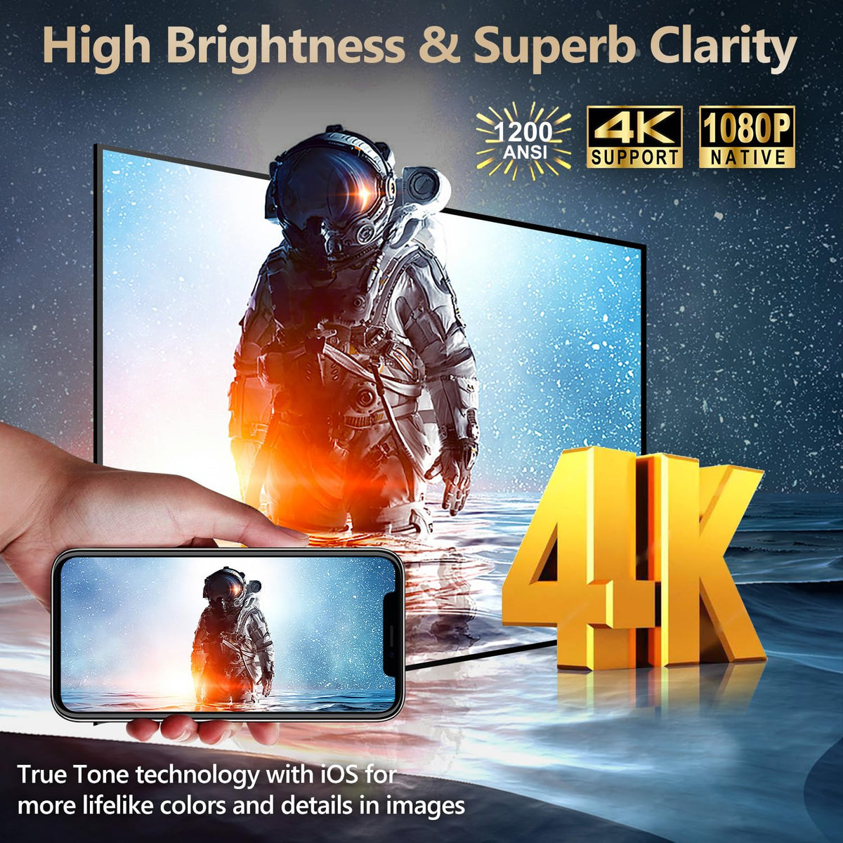 4K Auto Focus Daylight Projector 1200Ansi High Brightness Native 1080P, Smart Wifi6 Projector Ultra Hd Ceiling Home Cinema, Indoor Oudoor Party Wedding With Bluetooth Streaming Apps Hdmi Usb Ethernet