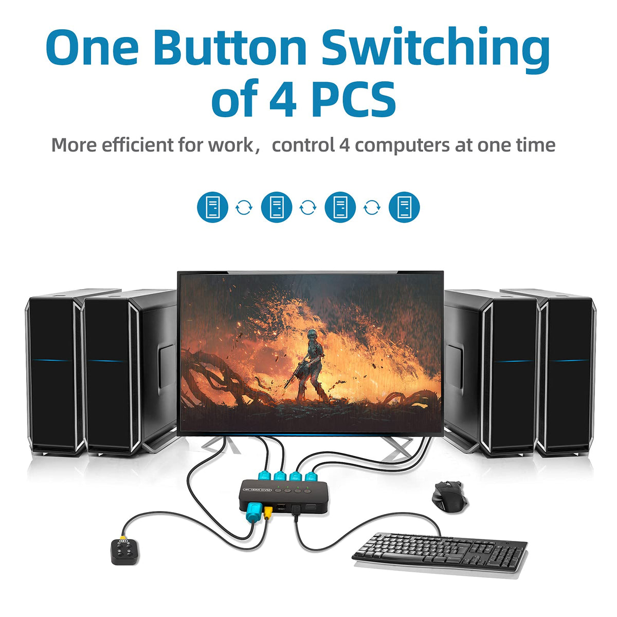 Dgodrt 4 Port 4K Hdmi Usb Kvm Switch Can Let You Control 4 Computers With 1 Hd Monitor And 3 Usb Devices(Keyboard, Mouse, Printer, Scanner) And Switch Between The 4 Computers Easily, And It Can Support 4K@30Hz Or Lower Resolutions.