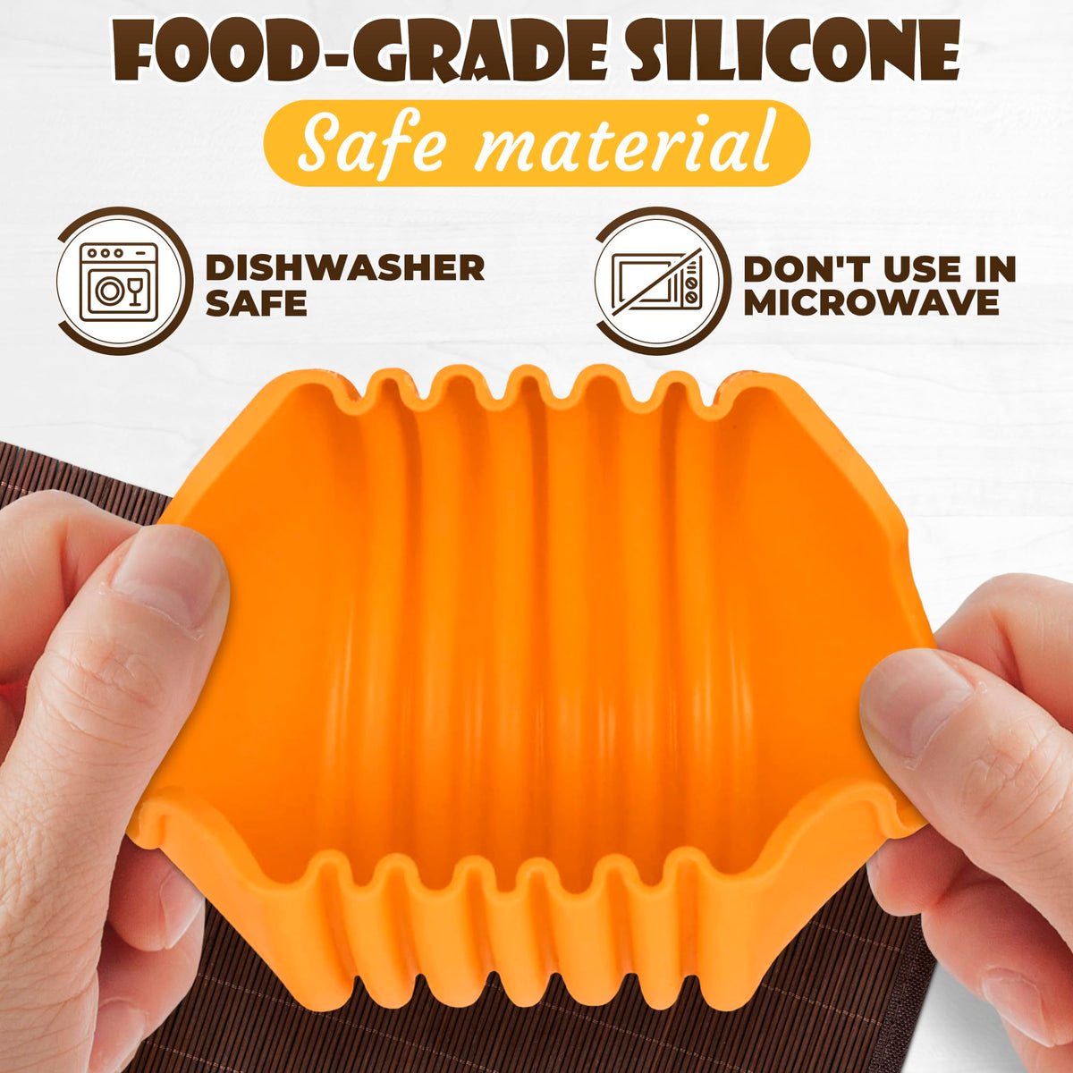 Q: What material is the silicone burger holder made from?A: The silicone burger holder is made from high-quality silicone, which is known for its durability, heat resistance, and wear resistance.