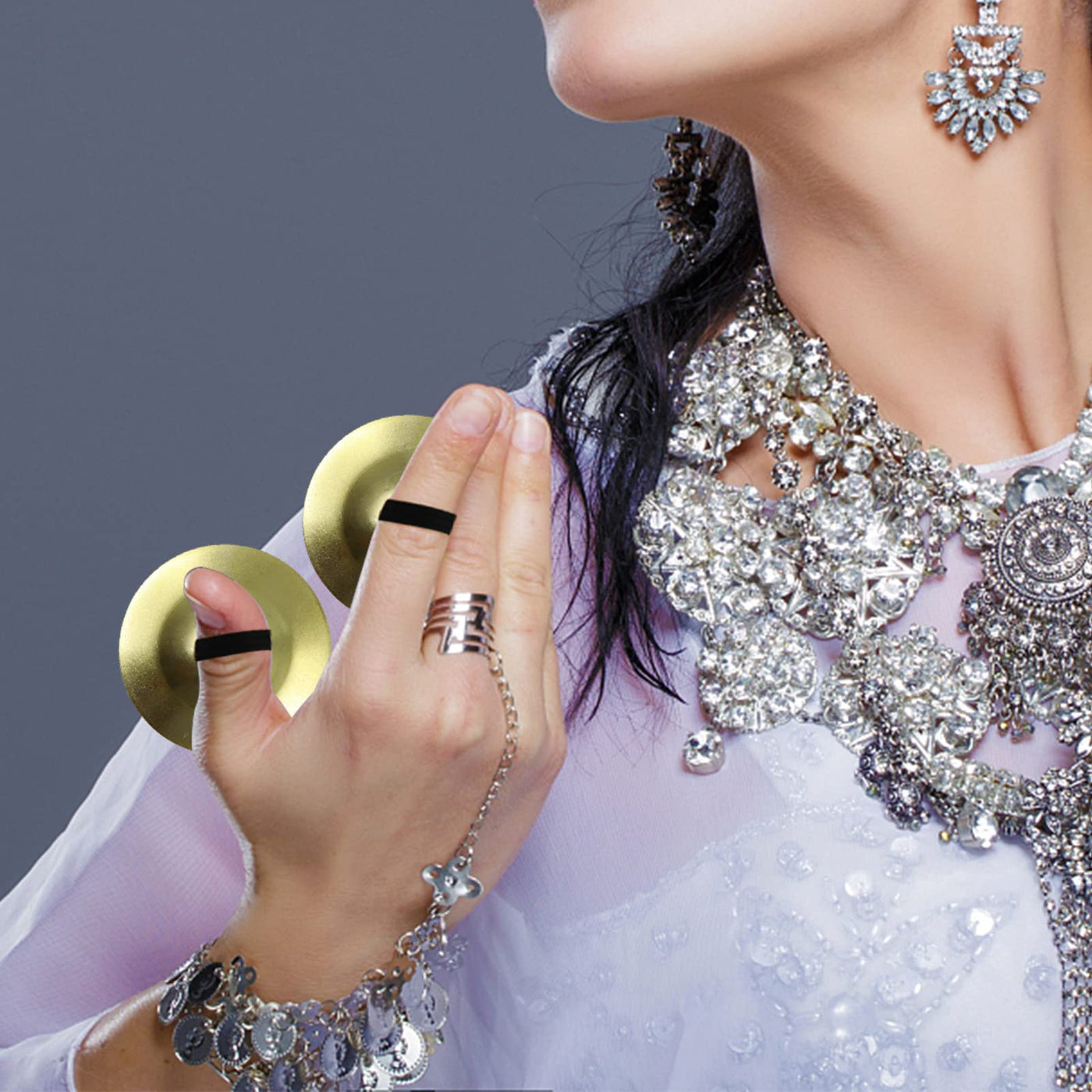 This Pair Of Finger Cymbal Is Made Of High Quality Brass, Which Is A Type Of Musical Instrument For Belly Dance. It Can Be Used In Dance To Beat The Rhythms, Also Can Be Used In Parties To Make Sounds To Liven Up The Parties. Product Features ? Not Easy To Break: Made Of High Quality Brass Material, The Yoga Meditation Bell Is Thick And Sturdy, Not Easy To Rust And Damage, Can Withstand Thousands Of Beatings. ? Exquisite Workmanship: The Belly Dance Finger Percussion Instrument Is Meticulous In Workmanship, Smooth And Round, And The Golden Surface Is Polished To Glitter, Which Looks Beautiful And Exquisite. ? Various Use Occasions: They Can Be Used For Belly Dancing, Sagats, Beating The Rhythm While Dancing, And Can Also Be Used For Songs, Storytelling, Meditation, Prayer Alone And In Group Events. Specification Material: Brass Color: Gold Size: 5.3Cm (2.1In) Diameter Package Contents: 2 Pairs Of Finger Cymbals