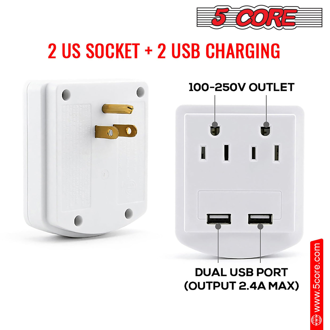 Description: Usb Charger For Usa Japan Canada Etc. 2 Ac Outlets With 2 Usb Charging Ports Compatible Countries: America, Japan, Canada, Philippines, Mexico, China, Anguilla, Barbados, Virgin Islands, Cambodia, Cayman, Colombia, Costa Rica, Cuba , El Salvador, Guam, Guatemala, Guyana, Haiti, Jamaica, Lebanon, Liberia, Panama, Peru, Puerto Rico, Chinese Taiwan, Venezuela, Etc. Compact Size Design Palm-Sized Design, This Adapter Saves More Space Of Your Bag, Light Weight And More Potable. Ultra-Compact Size And Equipped With International Voltage Compatibility. Suitable For The Home Use, Traveler, Businessman And Study Abroad Wide Spaced Outlets 2 Outlets Are Wide Enough For Big Plugs And It Will Not Block The Upper Socket, No Waste Outlet No Cords, No Messy Lines, Makes Your Home Tidier And Cozier. Use For Traveling Abroad What Is More, It Is Also Compatible With Many Countries And Is Ideal Choice For You To Travel Abroad Cruise Ship Accessories As This Adapter Has No Surge Protection, It Is Also A Good Outlet Extender For Cruise Ship Specifications Input Voltage: Ac 100-250V 50/60Hz Rated Power: 1250-2500W~10A Max (100-250V) Output Per Usb Port: Dc 5V=2.4A Max Usb Total Output: 5V=2.4A