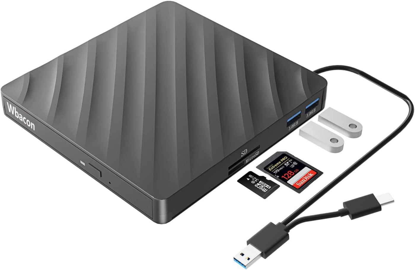 5 In 1 External Blu Ray Drive, Usb 3.0 Type C Slim Optical External Bluray Dvd Burner With Sd/Tf Card Reader 2 Usb 3.0 Hubs Comp