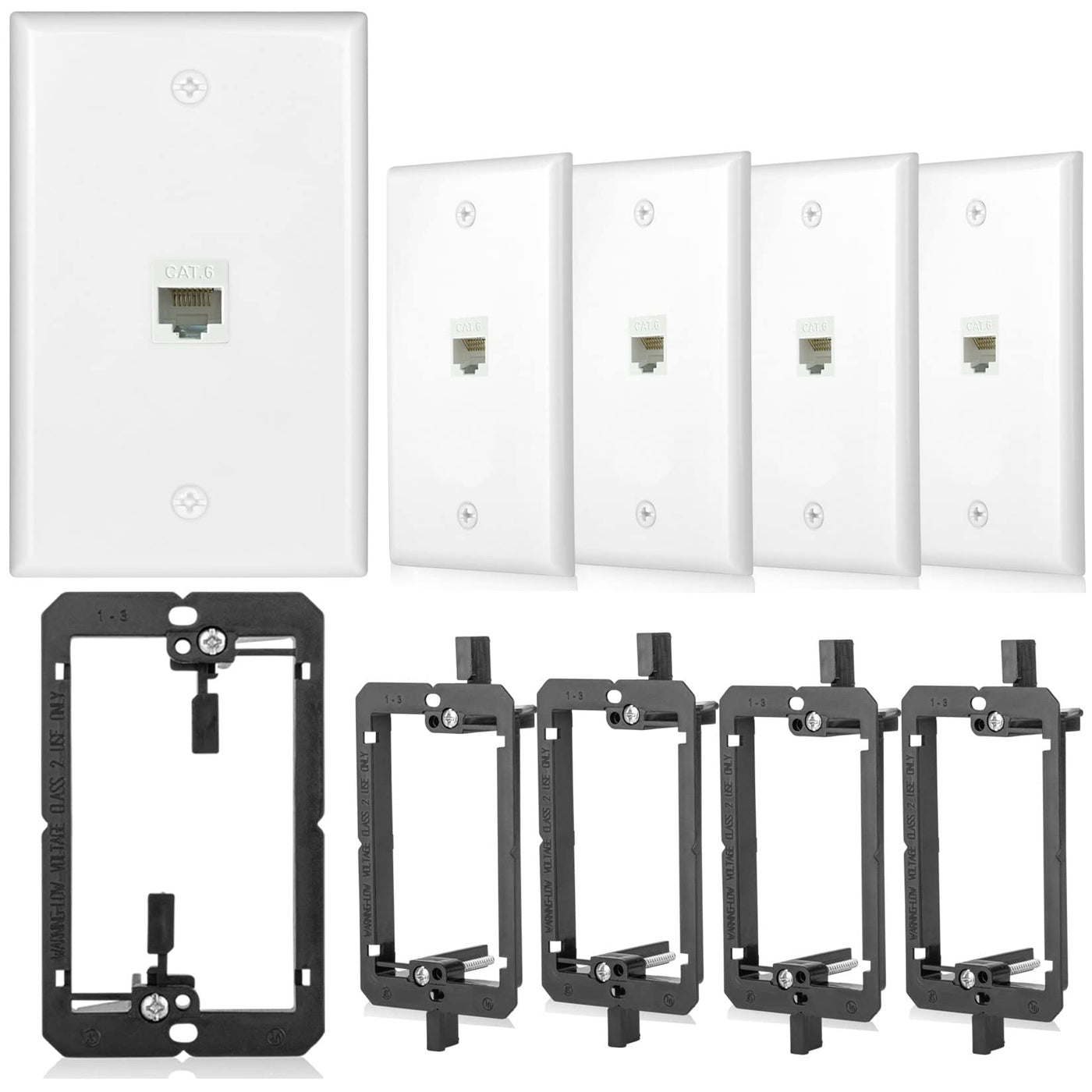 5 Pack Ethernet Wall Plate Rj45 Cat6 Keystone Jack Network Outlet White 1 Port 2 Inline Coupler Connector Box Cover With Low Vol
