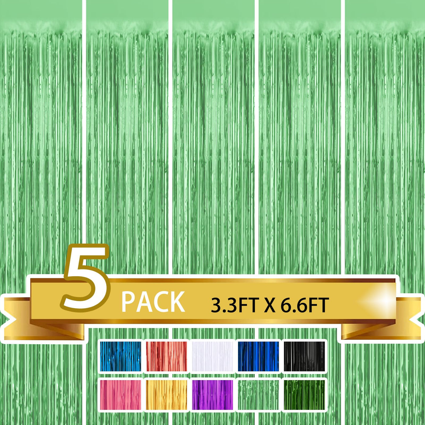 5 Pack Light Green Metallic Tinsel Foil Fringe Curtains Party Photo Backdrop Party Streamers For Birthday,Graduation,New Year Ev