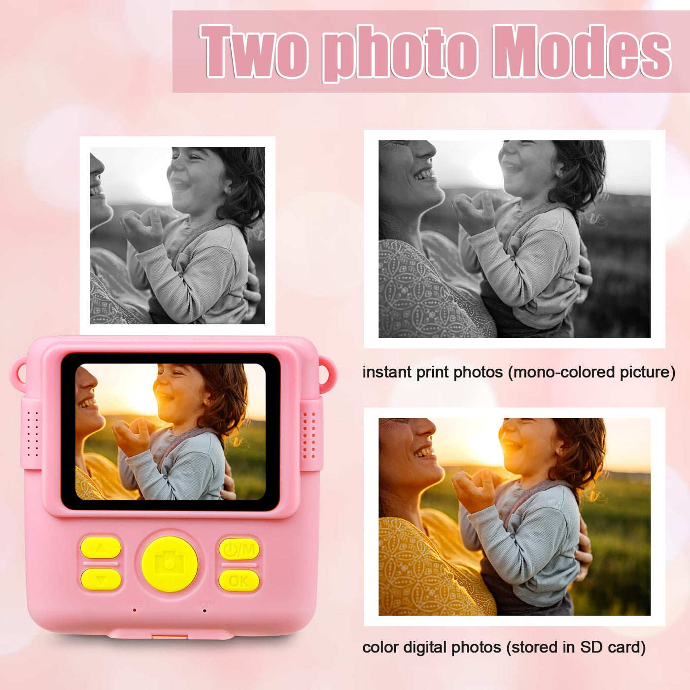 ?Safe Instant Camera For Kids?The Digital Instant Camera Uses The Inkless Thermal Printing Technology, You Can Easily Take Photos Without Adding Inkm. 3 Rolls Of Printing Paper Each Roll Of Thermal Paper Can Print About 75 Photos. We Provide Stickers And Colour Pen For Kids To Decorate Black And White Photos, Can Stimulate Their Imagination And Creativity.