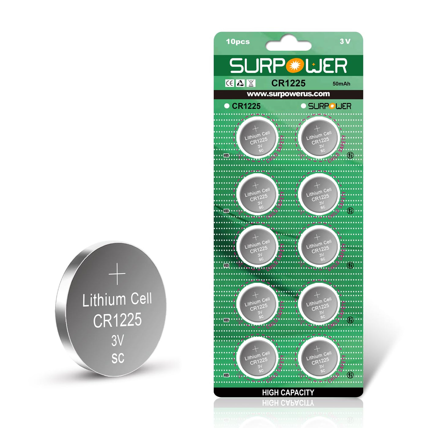 ?5 Year Warranty?Surpower Cr1225 3V Battery For Thermometer Cr 1225 10 Pack