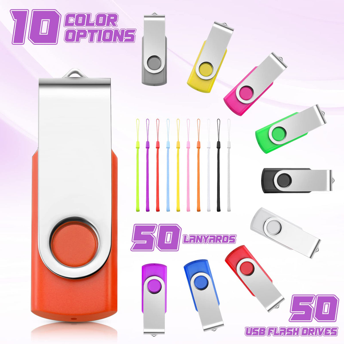 50 Pack Usb Flash Drives Bulk With Lanyards Usb 2.0 Thumb Drive Swivel Storage Flash Drive Pack Bulk With Led Light For Data Sto