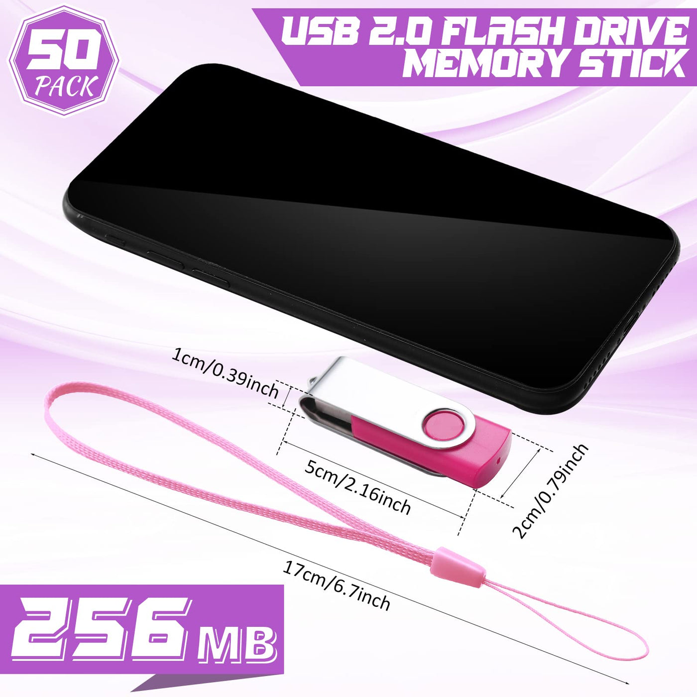 Features: Lightweight And Portable: The Flash Drives Has A Delicate And Compact Appearance, Weighing Less Than 15G, Keychain Design, Plus Colorful Lanyards, It Is Convenient For The Usb Thumb Drive To Serve You At Any Time. Wide Compatibility: The Thumb Drive Supports Multiple Systems For Cars, Tvs, Laptops, Desktops, Audio And Other Devices. Drives Are Compatible With Usb 2.0 Backwards Usb 1.1. Specifications: Material: Abs Plastic And Metal Size: About 1.97 X 0.79 X 0.39 Inches/ 5 X 2 X 1 Cm Color: Black, White, Red, Pink, Purple, Orange, Yellow, Gray, Green, Blue Chip: Grade A Flash Memory Chip Interface: Usb 2.0 Compatible Writing Speed: 3 Mb/S-7 Mb/S Reading Speed: 10 Mb/S-20 Mb/S Package Includes: 50 X 256 Mb Usb Flash Drives Warm Notices: The Colors May Exist Slight Difference Due To Different Screens. Manual Measurement, Please Allow Little Size Errors.
