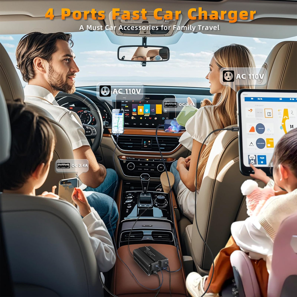 Best Power Inverter For Lightweight Travel! Convenience And Safety Always Comes To The First When Talking About Portable Vehicle Power Inverter. Equally Important Is Portability, The Ingeniously Designed Interior Architecture And Aluminum Alloy Housing Makes It A Dependable Mini Car Ac Adapter On The Road. Like Joy That Grows When Shared, Happiness Also Multiply With More Car Power Outlets. 2 U.S. Standard Outlets And 2 Usb Charging Ports (Max 3.1A Total Output) Can Ensure A Whole Family Usage. People Tends To Have Less Confidence With Little One, Can'T Believe In The Safety Of Mini Inverter For Car. However, You Can Fully Trust In The Quality Of This Car Charger With Plug Outlet, 5 Protection Technology Which Can Keep Your Devices Far Away From Overheating, Under And Over Voltage, Short Circuit And Overloads. Quick-Identify Your Car Adapter'S Working Status With Led Indicator, It'S Working When The Light Turns Blue, And Malfuncting When The Light Turns Red. Versatile Power Inverter For Every Journey-The Perfect Car Charger Adapter For Road Trips, Vacations, Camping, And Emergencies! Never Run Out Of Power When You Need It Most. Toss It In Your Travel Kit And Stay Charged Wherever You Go! Specification: - Color: Red - Output Power: 500W - Dc Input: Dc 11V-15V - Ac Output: 110V 60Hz - Usb Ports: 2 Usb Charger Ports, Max. Output 3.1A - Size: 6.49 X 5.7 X 2.36 Inches - Weight: 14 Oz (400G) Our Warranty: 24-Months Warranty 24 Hours Dedicated Email Customer Support