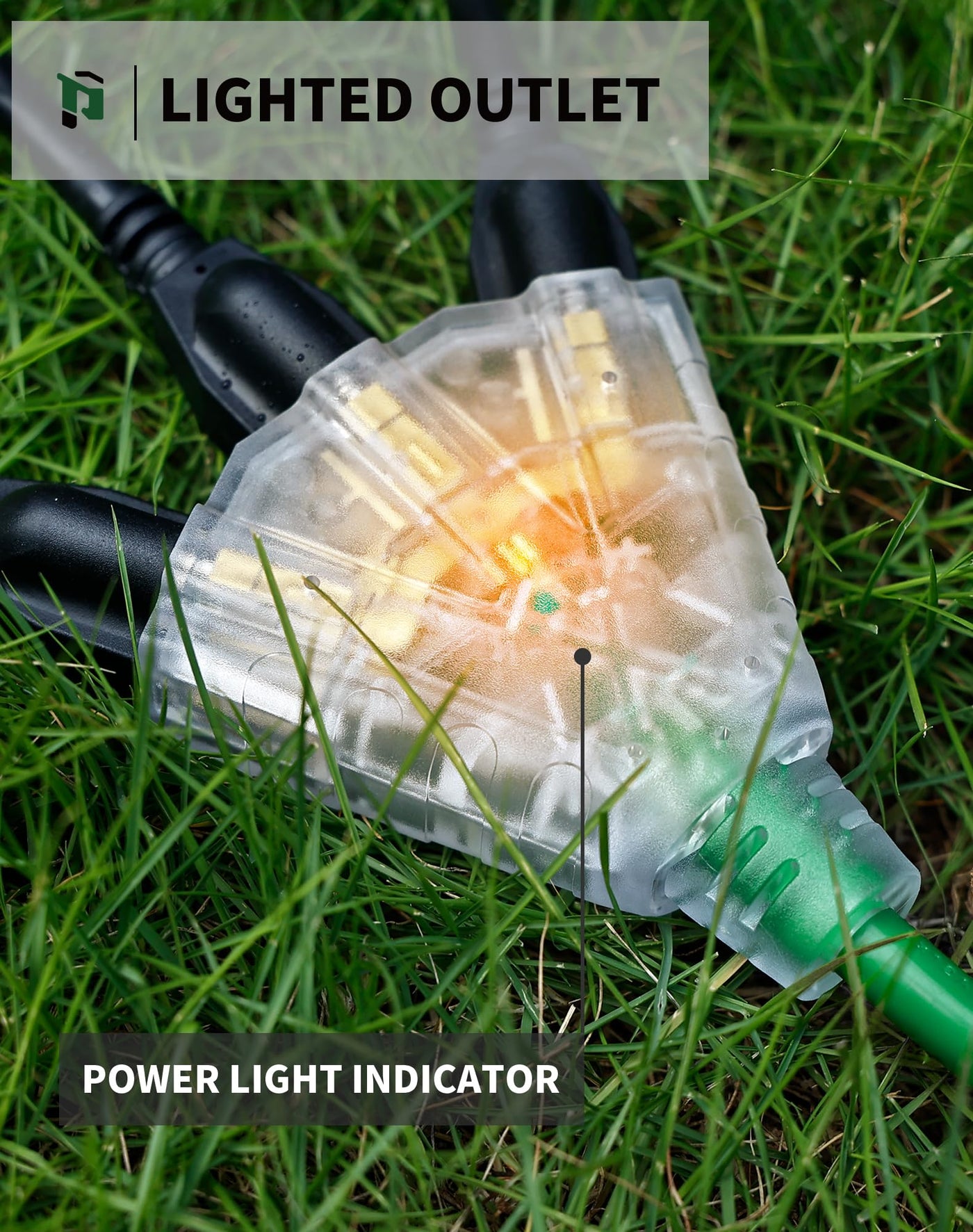 50Ft 12/3 Outdoor Extension Cord With 3-Outlets, Heavy Duty 12 Gauge 3 Prong Extension Cord Waterproof With Lighted End, 15A 12Awg 1875W Sjtw, Etl Listed - Great For Garage, Garden And Home, Green