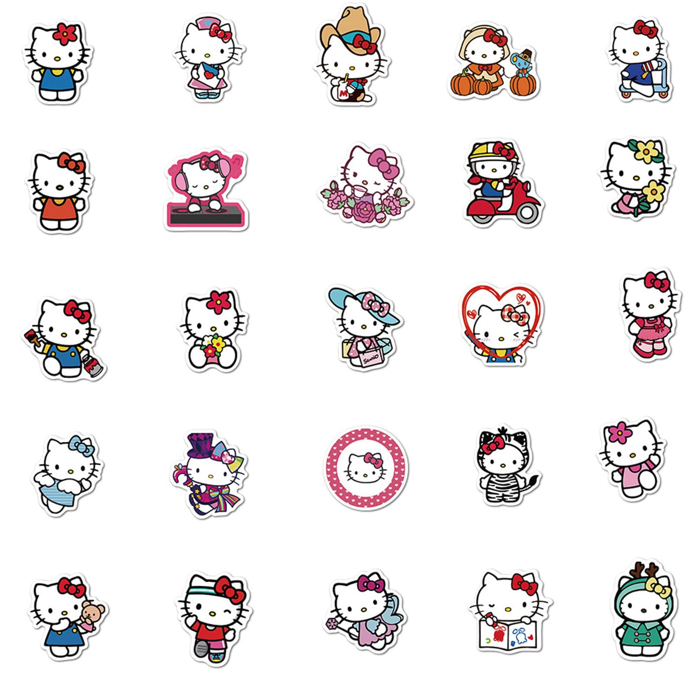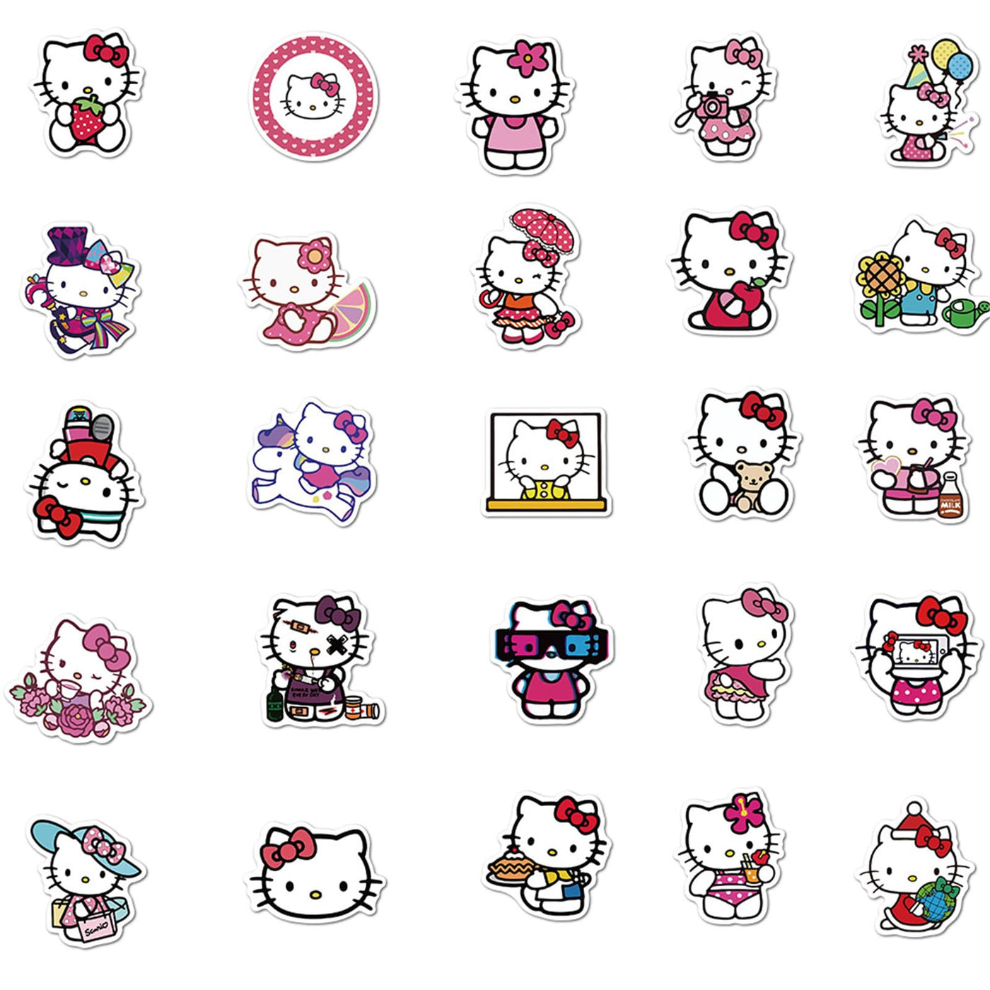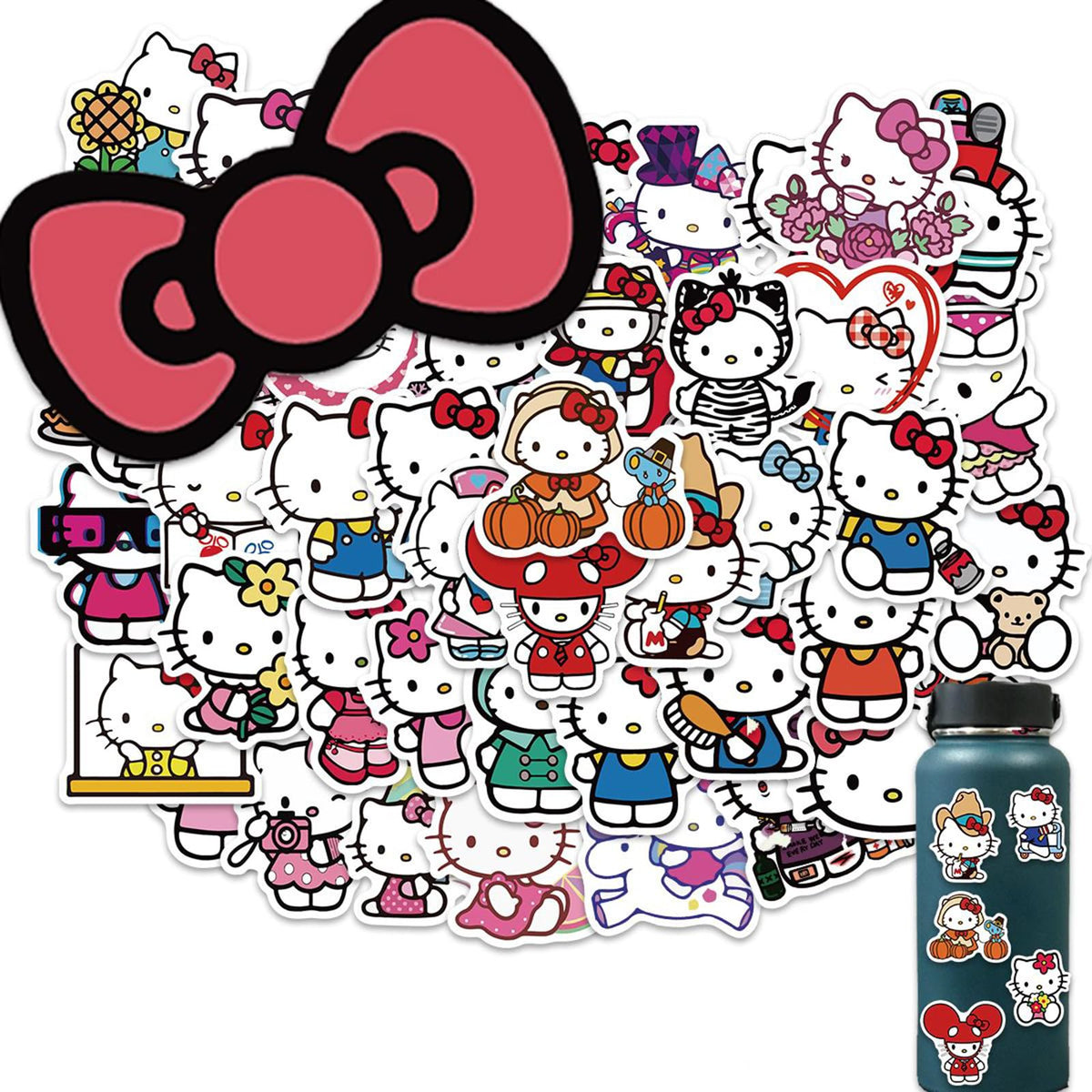 50Pcs Cute Cartoon Hello Kitty Stickers For Kids Teens, White Kitty Stickers Vinyl Waterproof Stickers For Skateboard Laptop Lug