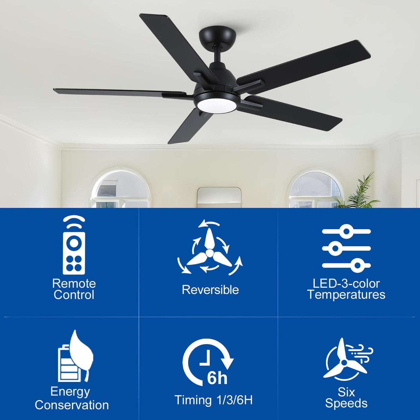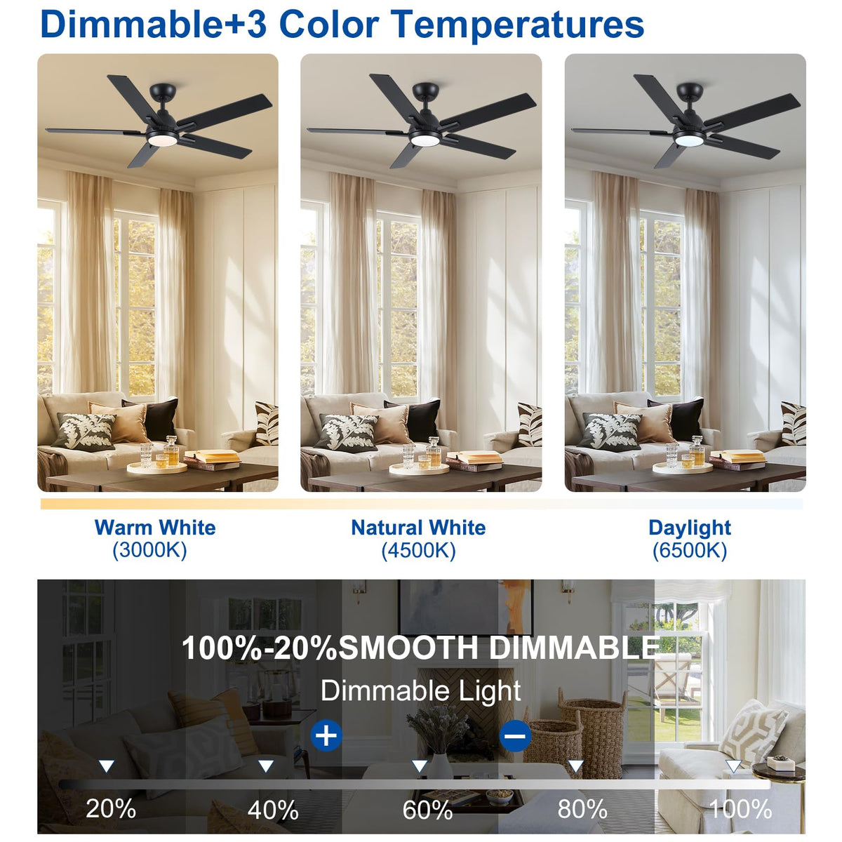 Ceiling Fan With Light,Black Ceiling Fan,5 Blades,Downro,6 Speed Adjustable Remote Control,24W Dimmable Led,1/3/6 Hours Timer,Reversible Dc Motor, Low Profile For Patio Living Room Bedroom Dining Room Warehouse