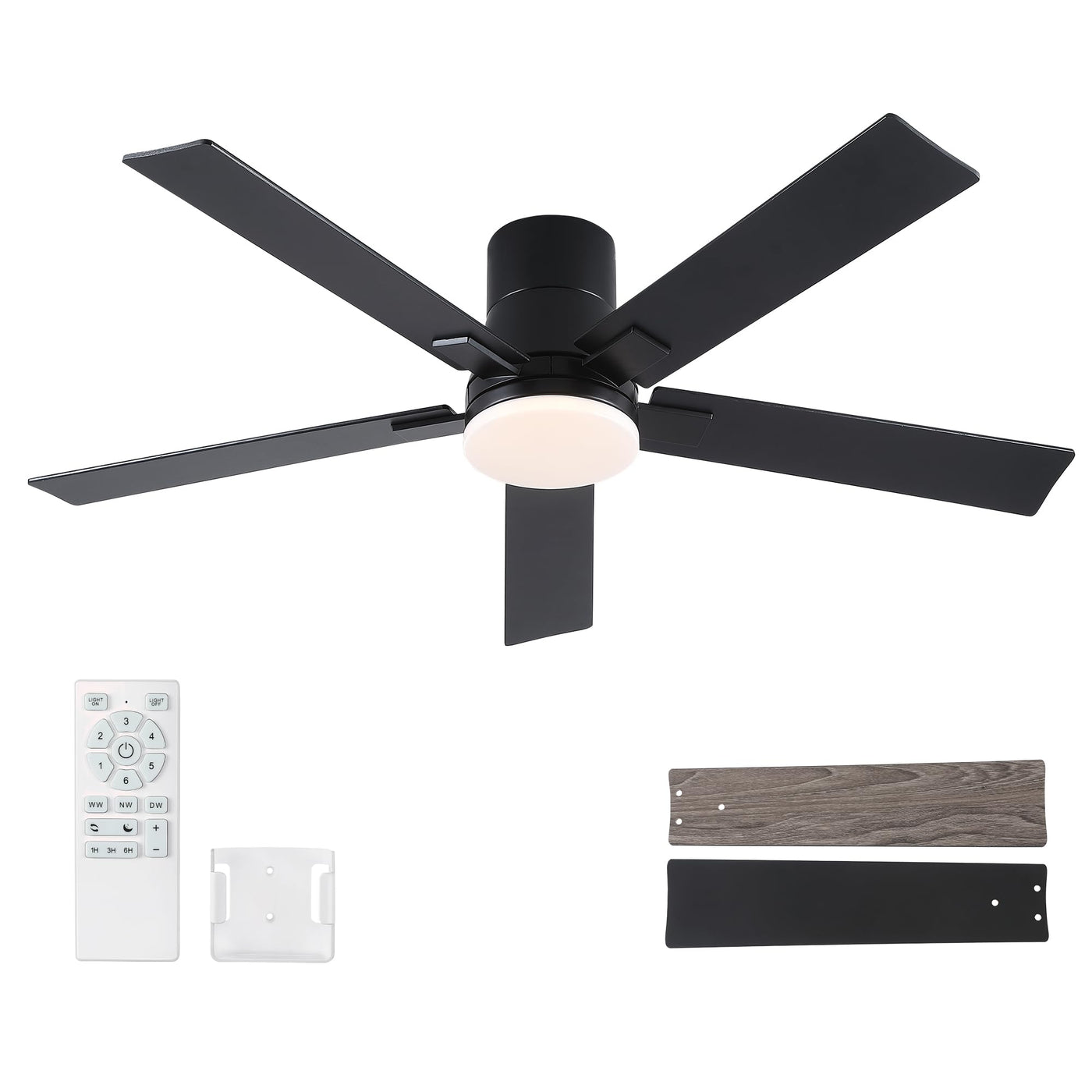 52 Inch Ceiling Fans With Lights And Remote,Flush Mount Black Ceiling Fan With 5 Blades,6 Speed Reversible Dc Motor,3Cct Dimmabl