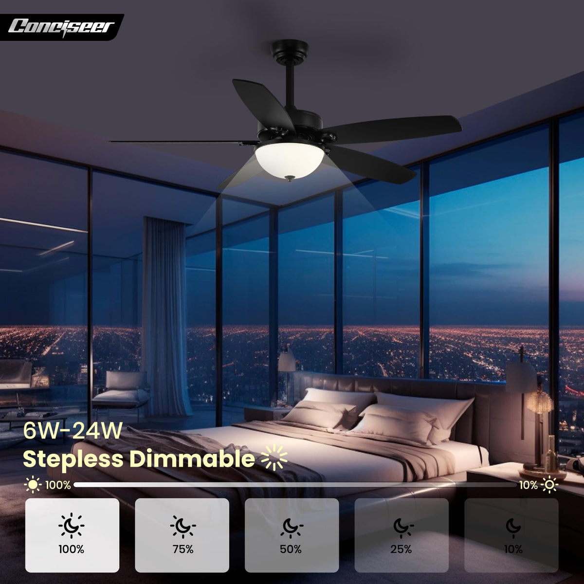 52 Inch Farmhouse Retro Ceiling Fans With Lights And Remote For Bedroom Dining Room Living Room Home Office Indoor/Outdoor, 3Cct Dimmable, Dual Color 5 Blades, 6 Speed Reversible Quiet Dc Motor, Black/Wood Grain