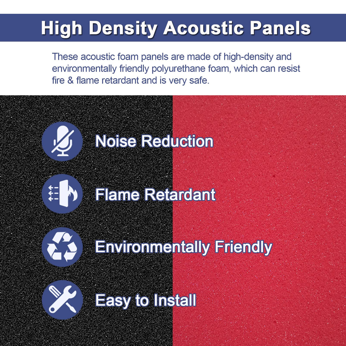 52 Pack Acoustic Foam Panels,1'' X 12'' X 12'' Acoustic Wedge Studio Foam Sound Absorption Wall Panels (Black/Red)