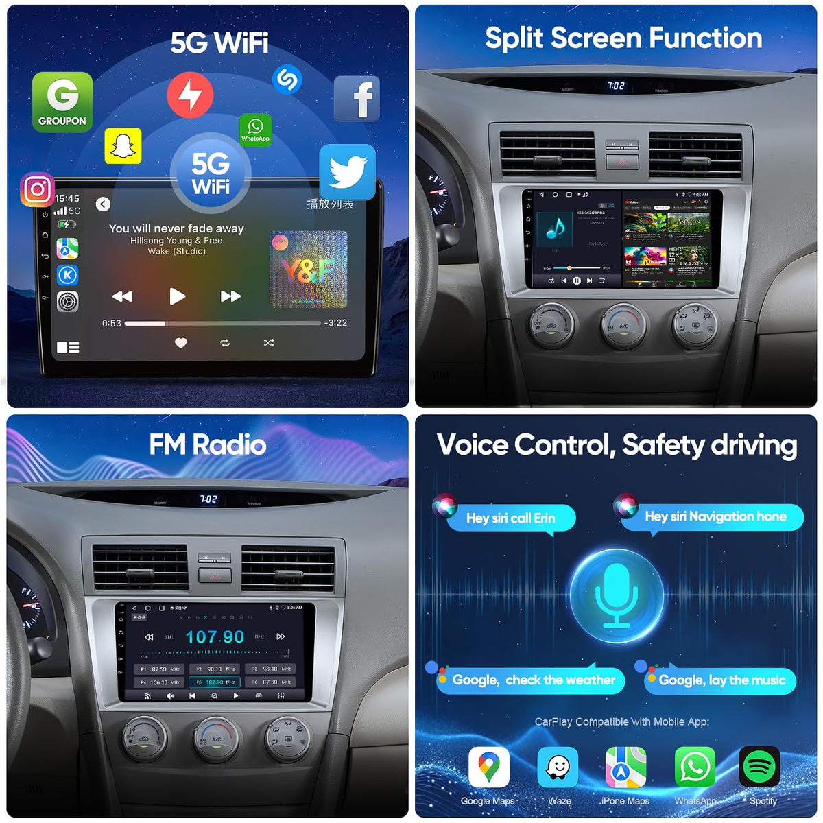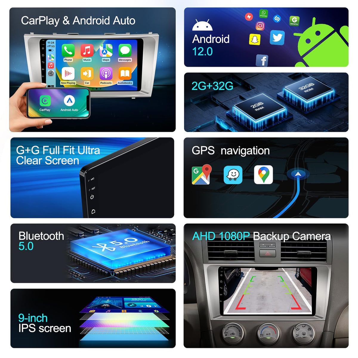 5G Wifi Android 12 Car Stereo For Toyota Camry 2006 2007 2008 2009 2010 2011, 9 Inch Ips Hd Touch Screen Car Radio Wireless Carp
