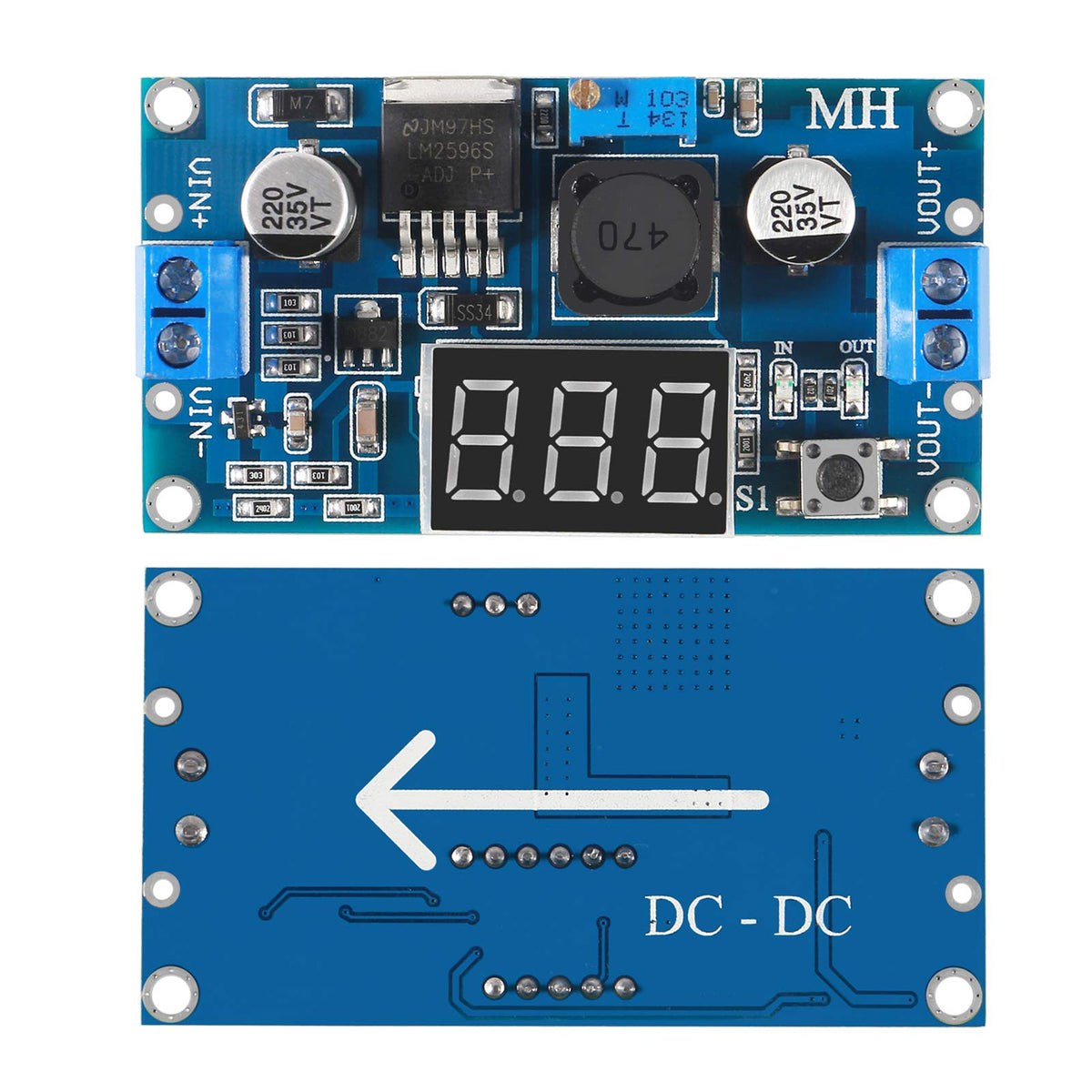 Specification: Module Model: Lm2596 Buck Converter + Voltmeter Cutting Size: 66.04Mm X 35.05Mm Input Voltage: Dc 4.2-40V Output Voltage: 1.25V~37V (Continuously Adjustable, The Input Voltage Must Be 1V Higher Than The Output Voltage) Output Current: 2A (Normal And Stable), 3A Max Ripple Frequency: About 150Khz Ripple Peak: About 100Mv Voltage Meter Error: 0.1V Keep Output Under 2A (Or 15W), And Use A Heat Sink When For A Long Time Working Wiring Connection: In+: Connect In+ To Your Input Positive In-: Connect In- To Your Input Negative Out+: Connect Out+ To Your Output Positive Out-: Connect Out- To Your Output Negative Applications: Experiment Teaching Temporarily Set Up Power Supply In The Outdoor Car(Audio, Electric Fan)Power Supply How To Calibrate The Digital Tube Voltmeter: Optional Steps For The Person Who Need A Highly Accurate Voltage Value 1.Short Press The Left ''On/Off'' Button To Start Up The Digital Tube Voltmeter. Long Press(>1S, 4 Seconds) The Left Button To Enter Self-Calibration Of Voltage Measurement(Calibration Range: -0.5-0.5V, Factory Setting Is 0.0). ''In'' Indicator Lights = Input Voltage Measurement Calibration Starts. Then, Long Press(>2 Seconds) The Right ''Mode'' Button, ''Out'' Indicator Lights = Output Voltage Measurement Calibration Starts. Tap The Left / Right Button To Reduce / Rise By One Unit (Since The Voltage Value Of One Unit Is Less Than 0.1V, You Need To 1-5 Times Tap The Button Continuously, So That The Voltmeter Can Change By 0.1V) 3.After Calibration, Long Press(>2 Seconds) The Right ''Mode'' Button To Preserve The Adjusted Value(No Loss With Outage) And Back To Normal Voltage Display. Package Includes: 5 X Dc-Dc Volt Buck Converter