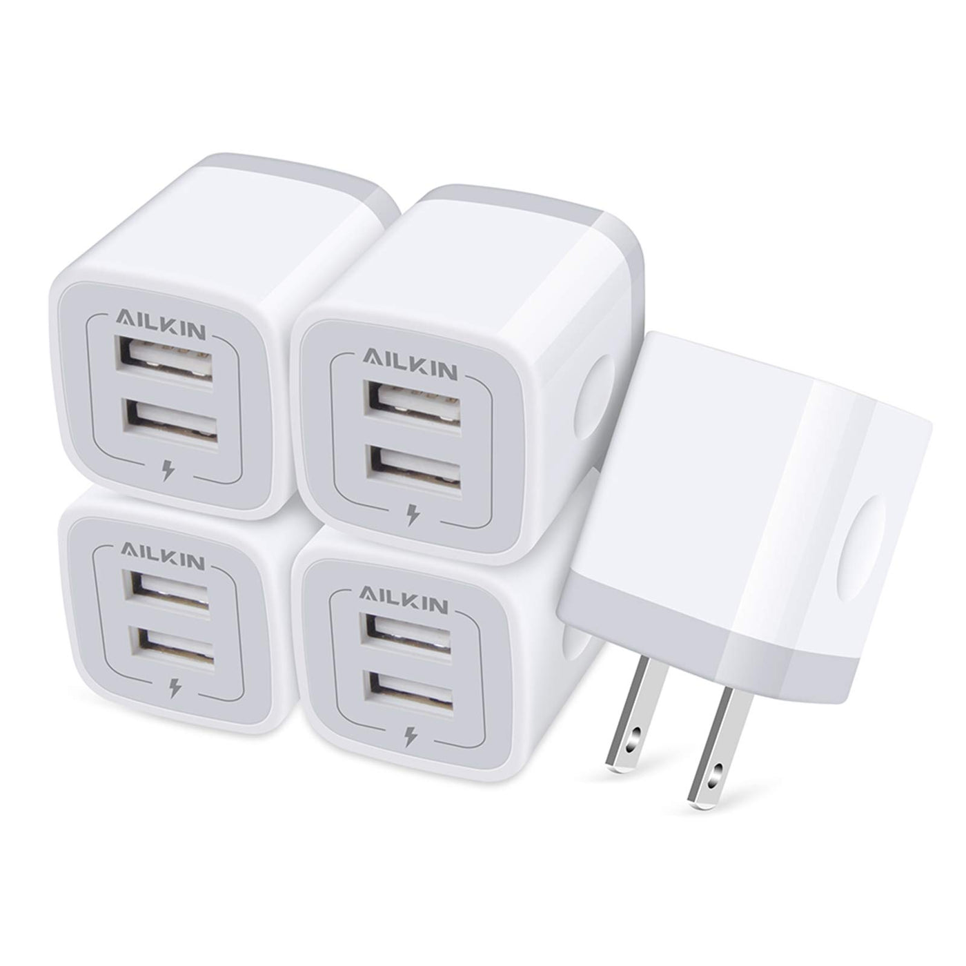 Travel Essential Products The Ailkin Wall Charger Is A Stylish Product That Can Charge Your 2 Devices Simultaneously At Full Speed, Let Your Family To Set Off Even On Long Busy Day In Total Comfort And Peace Of Mind Safely And Quality Assurance 1 2-Port Design High Speed Charge Total Max Up To 21 Amps, Can Safe Charging Of Any 5V Device (Ios Or Android), Lets You Charge Up To Two Devices(All Phones,Tablets)At Full Speed Simultaneously 2 All Our Products Have Approved Ul, Ce, Fcc & Rohs Certificationit Protects Devices And Chargers From Overheated And Over-Currents, Over Charging And Short Circuit , Provides You And Your Devices A Safe Charging Environment Charging Time Ipad Series & Tablets: About 3-5 Hours Ipod,Iphone Series & Smartphones: About 1- 2 Hours (Note: The Above Charge Time Is For Reference Only The Actual Charging Performance Is Subject To The Battery Remaining And Various External Factors) Compatibility Mobile Phones, Smartphones Including: Iphone, Samsung Galaxy, Portable Music Players, Ipod, Portable Gaming Devices, Ipad, Tablet,Mp3 Mp4,Camera Devices ,Gps And More Warranty: Ailkin Is A Registered In The Us Successful Brand, Brand Registration Number: 5708500Friendly Customer Service Specifications Input:Dc12V24V Output:Dc5V-21A(Max) Size: 125*125*145 In Material:Pcabs Package Included 5X Wall Charger (2 Usb Outputs) Premium Retail Recycle Package Make It A Perfect Gift For Family And Friend
