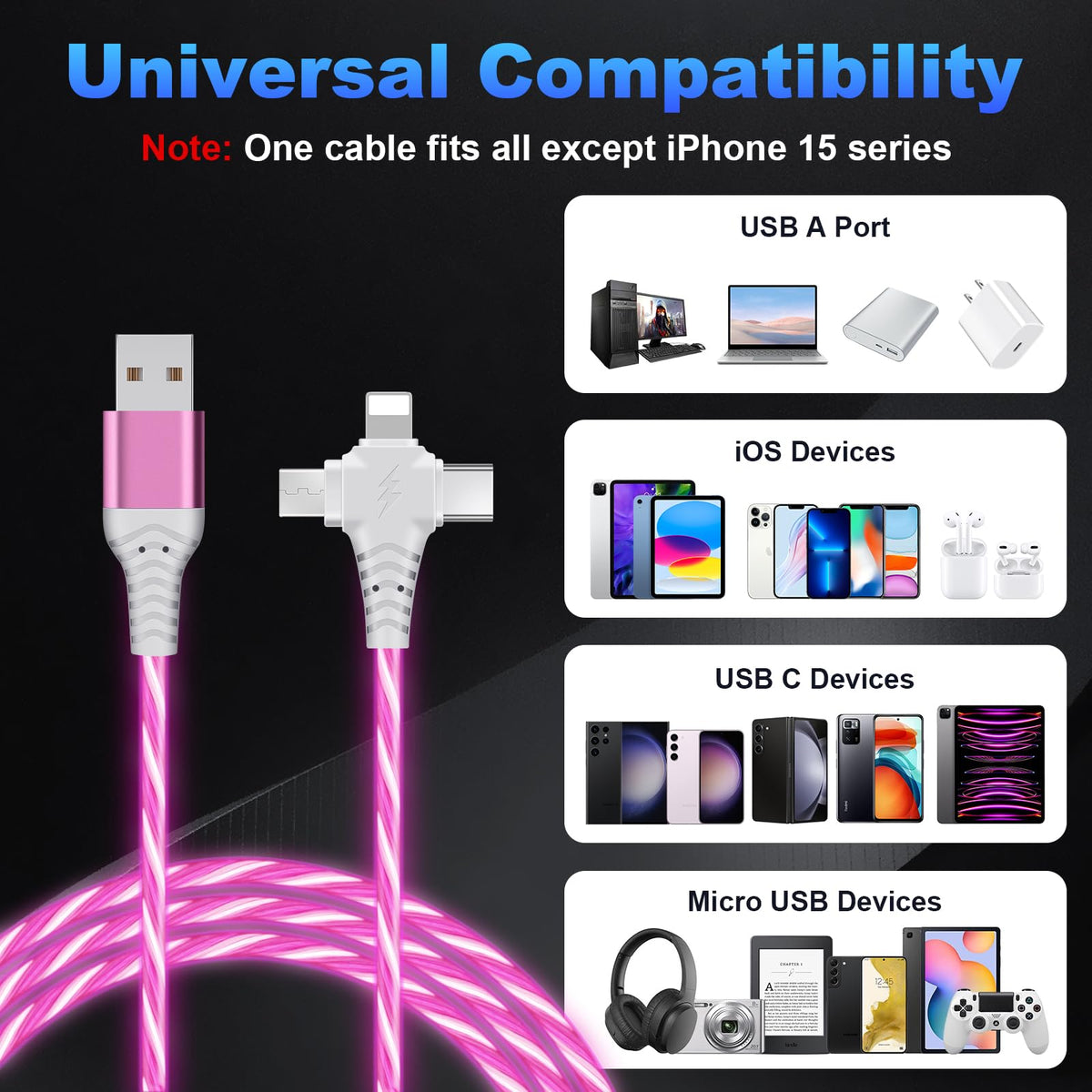 6.6Ft Light Up Multi Charging Cable 3 In 1 Glowing Fast Charging Cord 120W 3 In 1 Light Up Multi Charger Cable With Usb To Ios/T