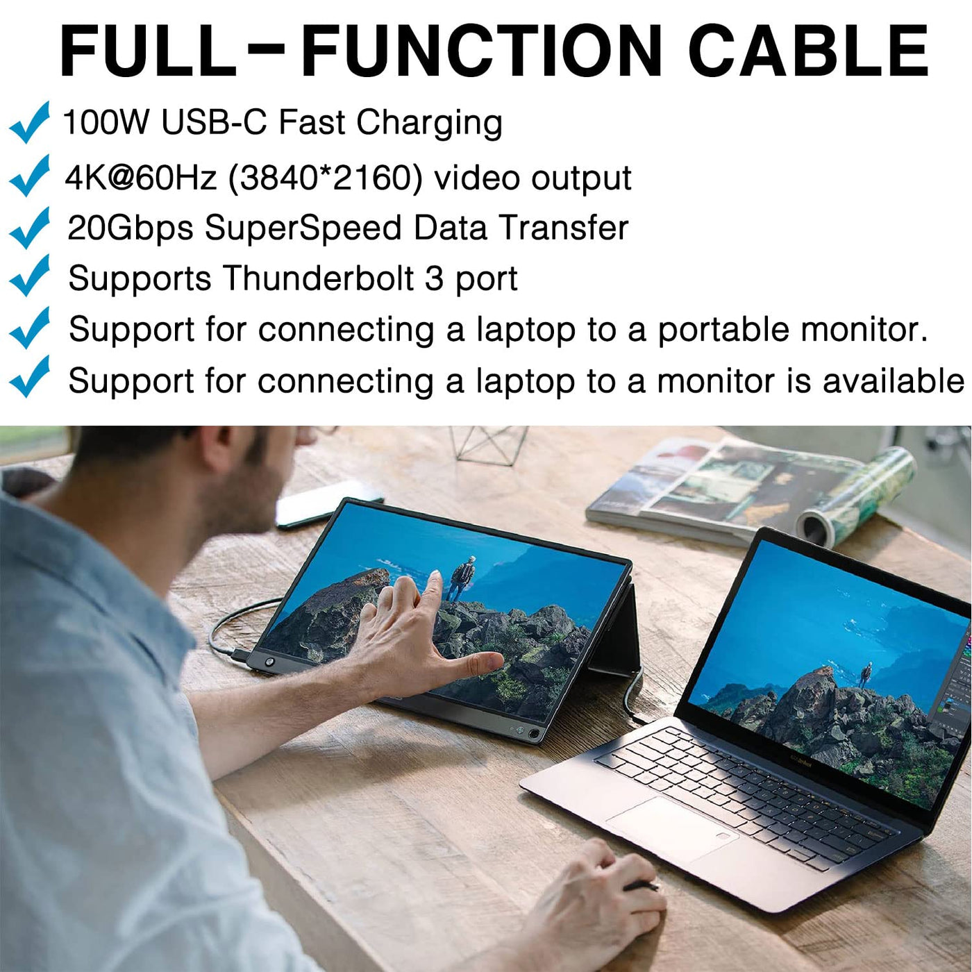 Usb C To Usb C 3.2 Gen 2 2 Cablemax Output: 20V 5A 100Wlength: 6.6Ft (79In / 2M)High Speed Date Transferusb 3.2 Gen 2 2 20Gbps (Support Video Output)Important Notes:1.This Is Usb C To Usb C 3.2 Gen 2 2 Cable, Compatible With Usb C 3.2 Gen 2 2 Port And Thunderbolt 3 Port.2.The Video Function Only Works For Those Devices Whose Usb-C Port Supports Dp Alt Mode.3.Fully Complies With Usb 3.2 Gen 2X2 Standard And Provide Super Speed Syncing At Max 20 Gbps, Which Is Twice The Speed Of Usb 3.1, Fast Transfer Your Documents, Movies In Short Time. And It Also Backward Compatible With Usb 3.1, 3.0 And 2.0. (Note: Device Requires Usb 3.2 Function When Using 20Gbps Tranfer Speed, Such As Thunderbolt 3 External Ssd Hard Drive Hdd)4K Video & Audio Output:4K (3840X2160) Video Resolution With A 60Hz Refresh Rate Hdr 10-Bit Color Depthauthentic Audio Transmission20 Gbps Data Transfer Support:Transfer Data To An External Ssd Drive With Usb-Cconnect A Usb-C Docking Station To A Host Computertransfer A Full-Length Hd Move In Less Than 30 Seconds 100W Super Fast Chargingcompatible With Type-C Port Display Monitor:Lepow Z1Cocoparasuszenscreenarzopakyyaocviewsonicmore Portable Monitorcompatible With Type-C Port Smartphones:Samsung Galaxy S20/S20+/S20 Ultra/S10 / S10+ / S9 / S9+ / S8 / S8+Samsung Galaxy Note 10 / Note 10+ / Note 9 / Note 8 / A50 / A70 / A80Google Pixel 4A / 4A Xl / 3A / 3A Xl / 3 / 3Xl / 2 / 2Xlhuawei P30 / P30 Pro / P20 / P20 Pro Nexus 6P / 5Xcompatible With Type-C Laptops:Macbook Pro 16'' 2019Macbook Pro 15'' 2019 / 2018 / 2017 / 2016Macbook Pro 13'' 2019 / 2018 / 2017 / 2016Macbook 2017 / 2016 / 2015Mackbook Air 2020 / 2018Ipad Pro 11'' 2020 / 2018 Ipad Pro 12''9 20
