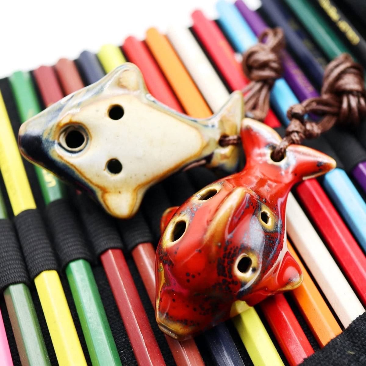 6 Hole Ocarina Fish Shaped Ocarina Alto C Ceramic Ocarinas Instrument C Key Pack Of 2 Red And Blue Ceramic Ocarina Decor