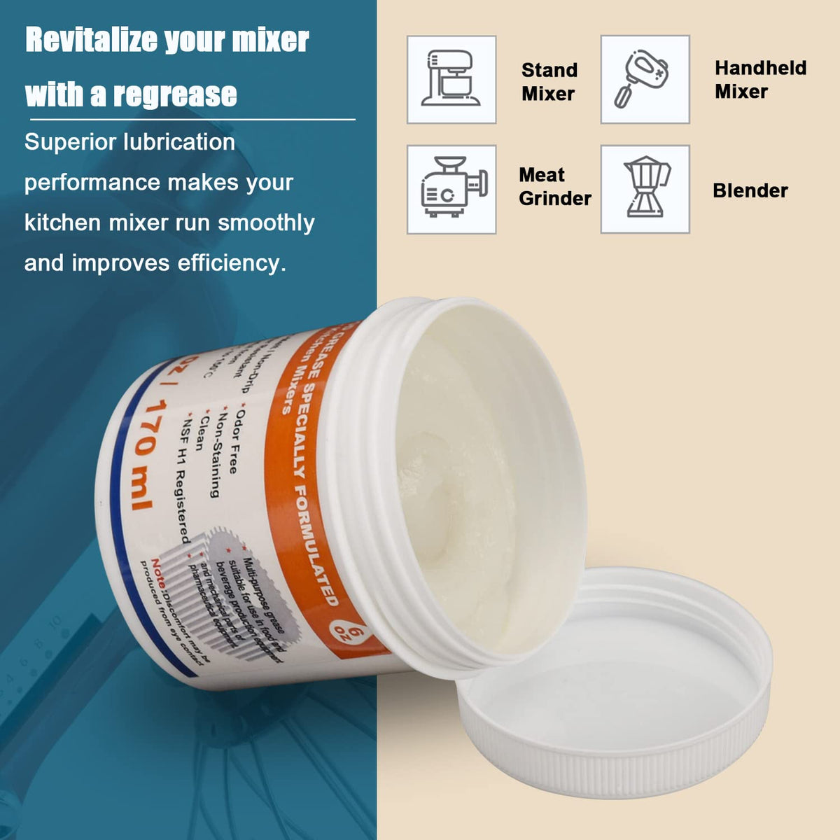Q: Is this food grade grease safe for use with food processing appliances?A: Yes, this food grade grease is specifically designed for use with food processing appliances like stand mixers. It is safe and non-toxic, ensuring that it won't contaminate your food while maintaining the integrity of your kitchen equipment.