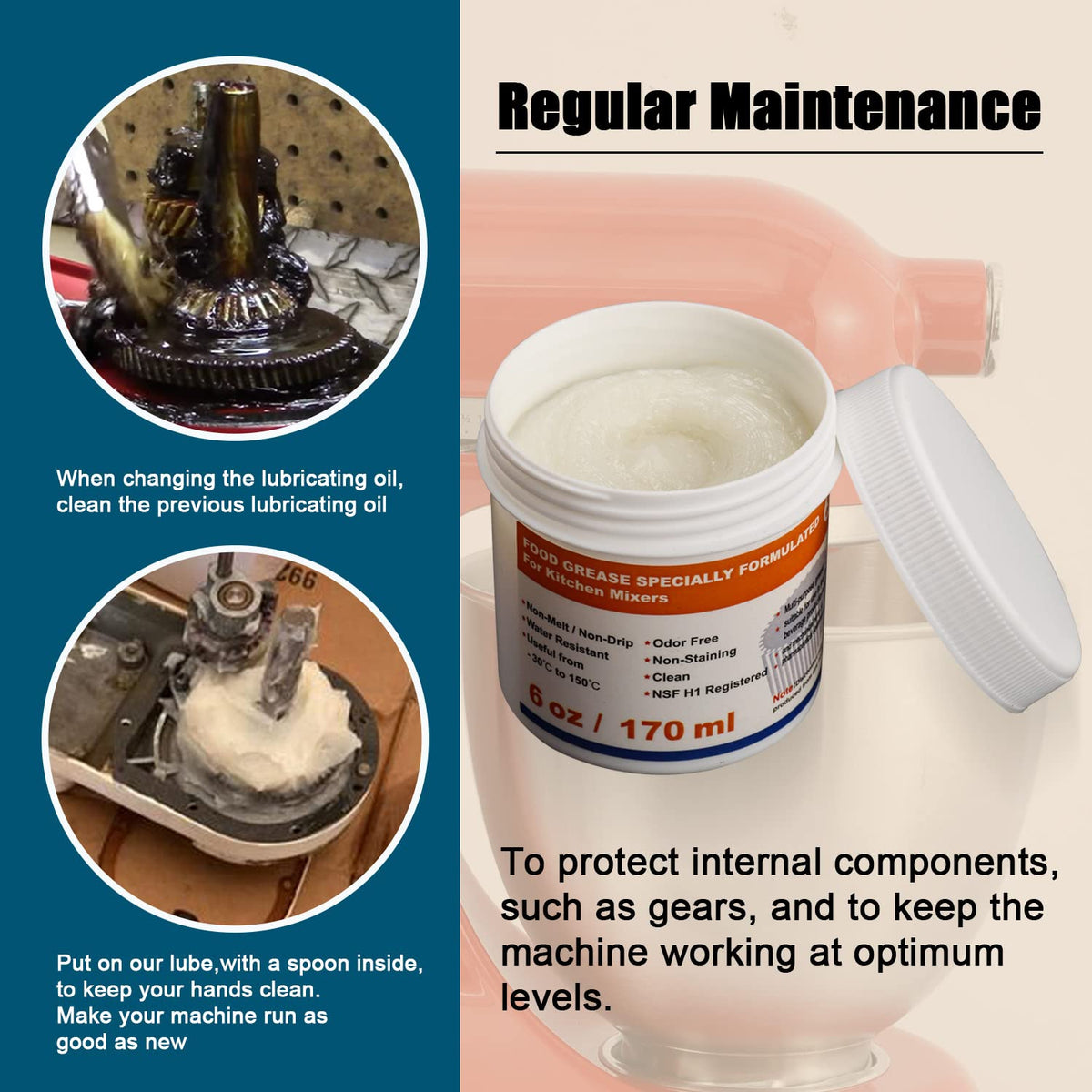 Versatile Use: This Food Grade Grease Provides Lubrication For Your Kitchen Appliances Including Stand Mixers And Other Food Processing Machines.The Large 6 Oz. Capacity Is Ideal For Machines That Require More Grease. For Smaller Machines, Be Sure To Replace It Once And Use The Extra Next Time | This Food Grade Grease Has The Lubricating Properties To Get Your Kitchen Mixer And Other Appliances That Need To Be Re-Lubricated Running Smoothly And Quietly Again, Which Can Increase Efficiency | Ideal For Regular Maintenance: This Product Helps To Extend The Life Of Your Machine By Not Degrading Its Performance Compared To Greases That Can Turn Black, Leak And Damage Gears After Years Of Use. This Is An Ideal Product For Regular Maintenance, Protecting Internal Parts Such As Gears And Keeping The Machine In Top Working Order | We Offer Price And Guaranteed Quality. So You Can Buy With Confidence And No Need To Hesitate When You Want To Buy A Second One To Keep Your Kitchen Utensils In Good Condition | The Grease Comes With A Spoon For Extra Convenience When Oiling | Due To High Temperature Event, The Food Grease May Experience Mild Melting. To Solve This, Simply Store The Grease In A Fridge Or Cool Room For A Short Period To Solidfy (And Make Sure It Is Not Accessible To Children) And It Is Ready To Use