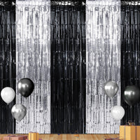 Q: Can these foil fringe curtains be used outdoors?A: Yes, the black and silver foil fringe curtains are versatile and can be used for both indoor and outdoor decorations, enhancing the festive atmosphere of your events.