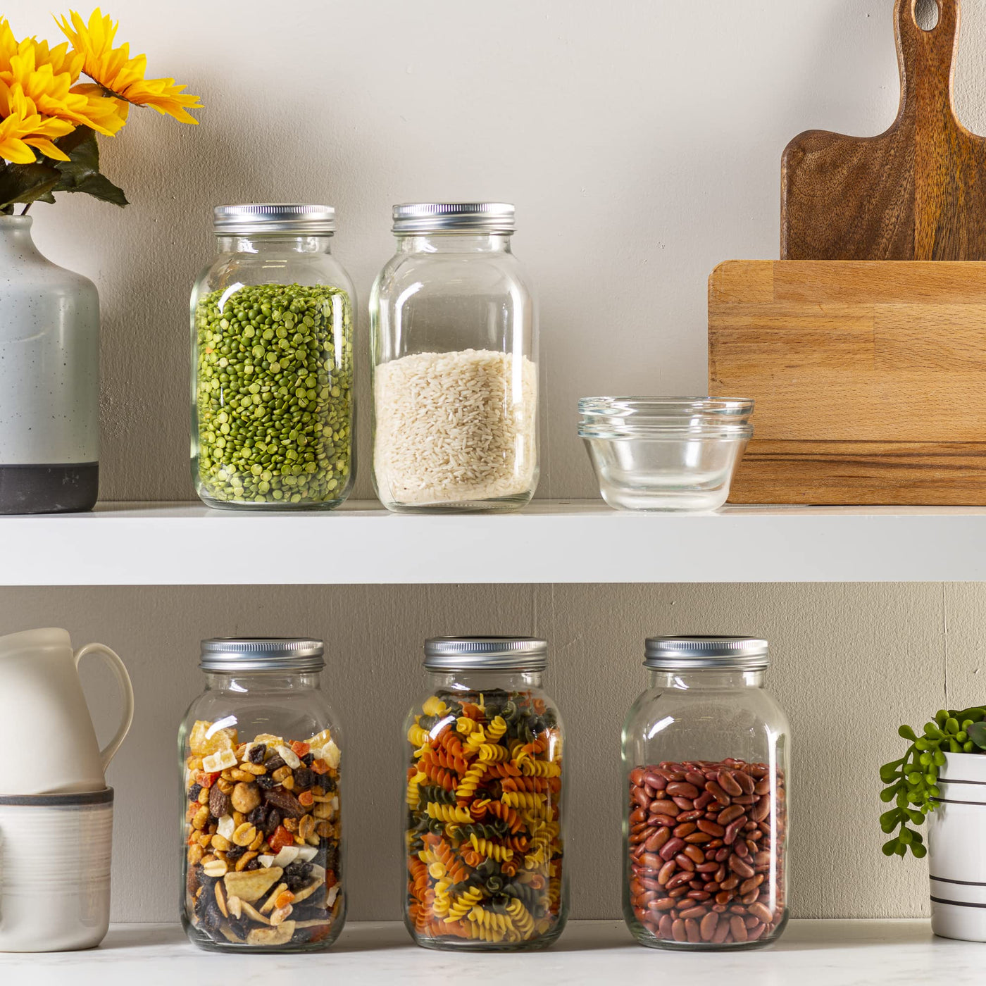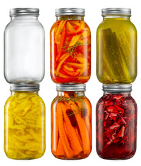 Q: What can I use the 32 oz. mason jars for?A: The 32 oz. mason jars are versatile and perfect for canning and preserving a variety of foods, including fruits, vegetables, pickles, beans, and sauces. They're also great for meal prep, allowing you to store treats and dry foods securely.