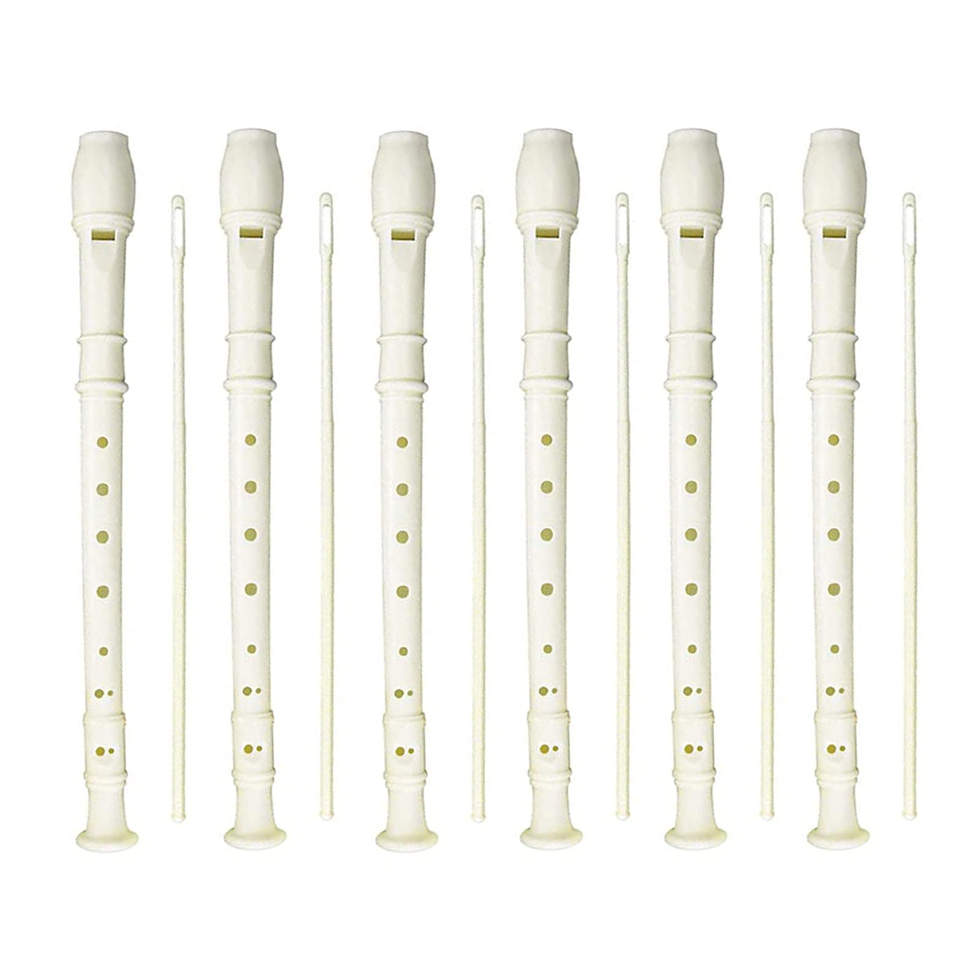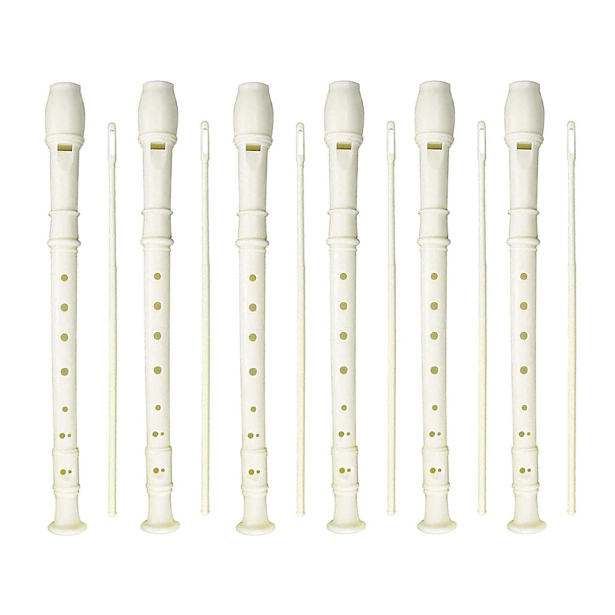 6 Pack 8 Hole Soprano Recorders Descant Flute With Cleaning Rod German Style For Beginner Graduation Or Back To School Gift (Whi